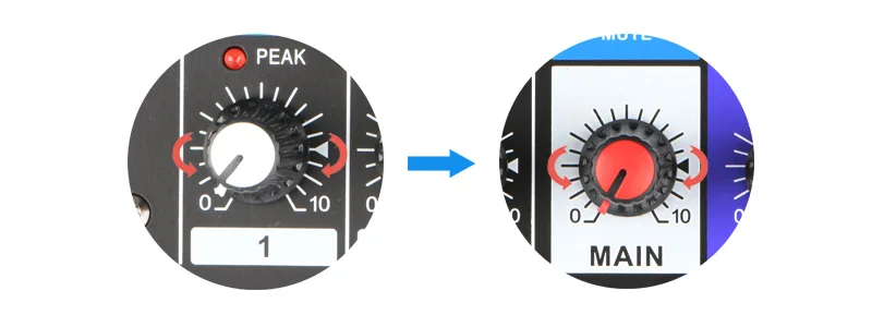 B) Gire la perilla PRINCIPAL para aumentar o reducir el volumen de salida principal