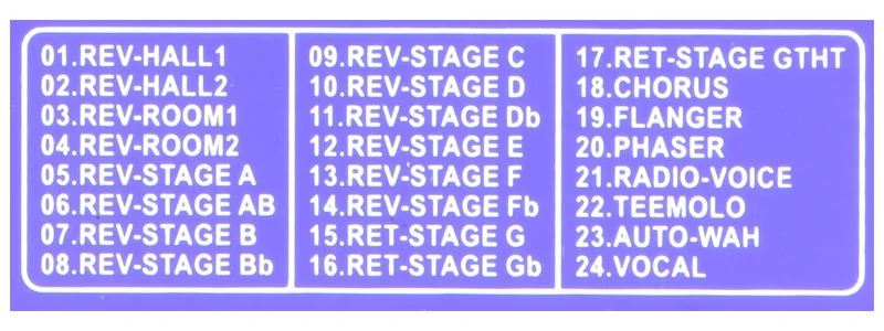 El efecto 24 es vocal. No es una voz original, no hay ningún efecto.