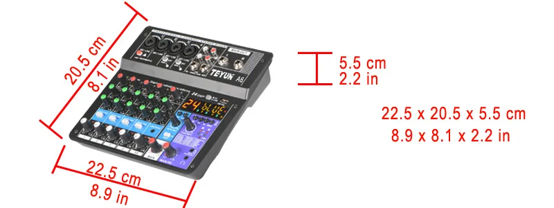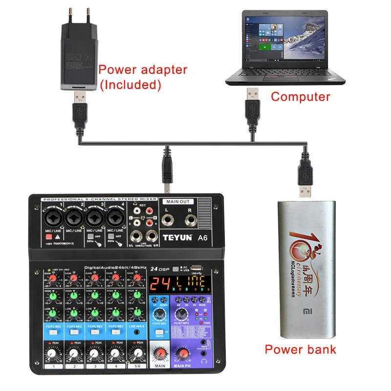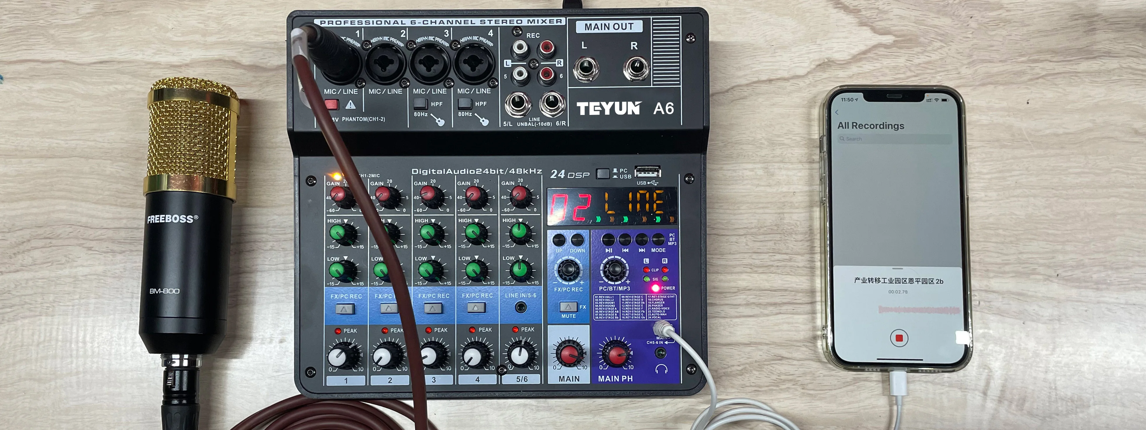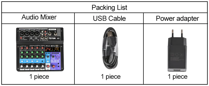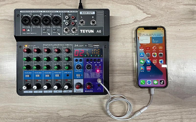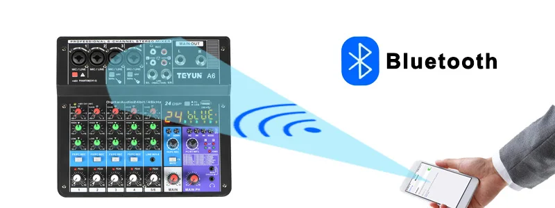 TEYUN-Mezcla de sonido A6, 6 CANALES, Bluetooth, USB móvil, reproducción de ordenador, 24 efectos DSP, mini mezclador de audio portátil para estudio de guitarra, transmisión de grabación