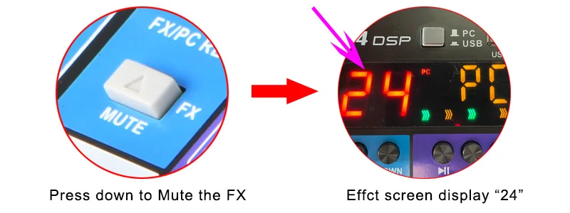 Si no necesita efecto, presione el botón "FX MUTE" para silenciar el efecto.