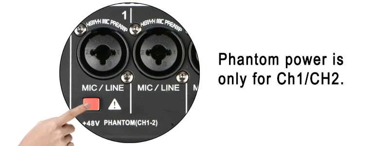 3) El fantasma es solo para enchufes CH1 y CH2 XLR.