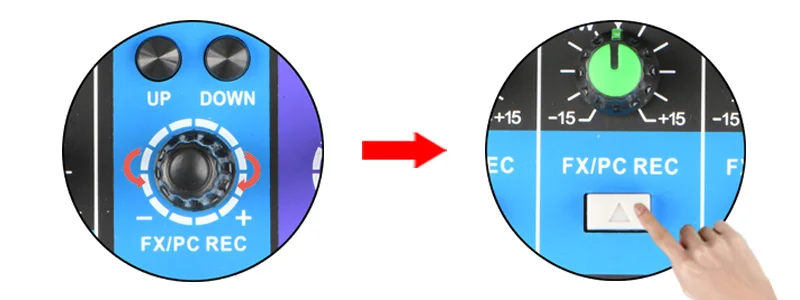 2) Presione el botón "FX/PC REC" para permitir la entrada de efectos al canal.