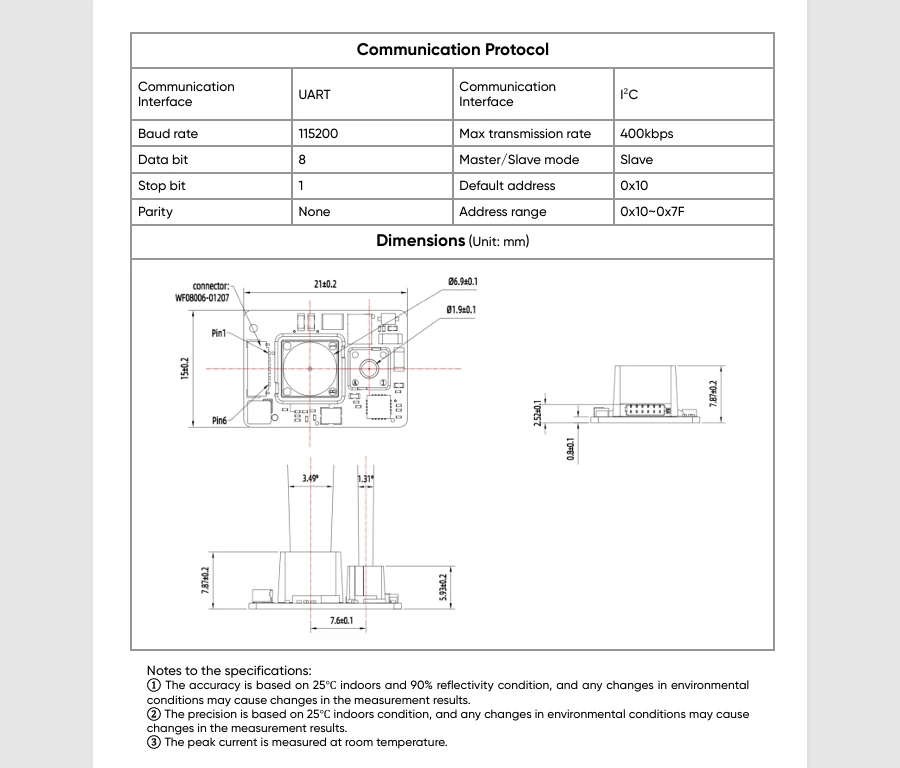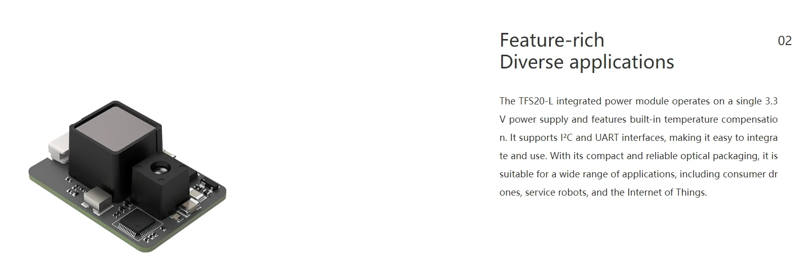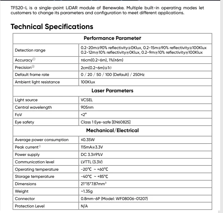 TFS20-L Módulo de sensor LiDAR micro de un solo punto en miniatura UART IIC I2C de 20 metros para robot drone
