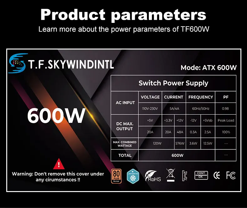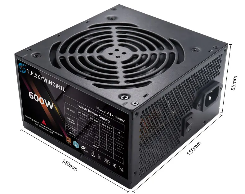 600W PC PSU Power Supply Unit Black Gaming Quiet 120mm Fan 110V 220V ATX Desktop Computer Power Supply For BTC