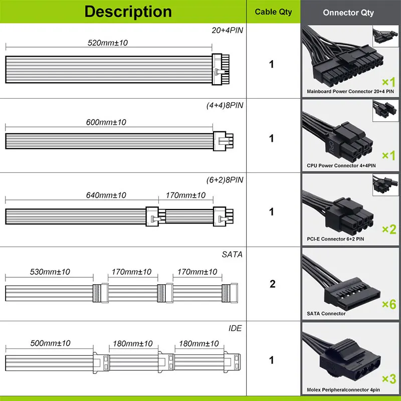 Fuente de alimentación totalmente modular: la tasa de conversión de carga de potencia modular NO de 700 vatios es más alta que la fuente de alimentación ordinaria, que ahorra más energía y ahorro de energía, hermoso en cableado, ahorra más espacio y proporciona más comodidad para los reproductores DIY. Para usuarios que desean tarjeta gráfica múltiple y funcionamiento de disco duro múltiple