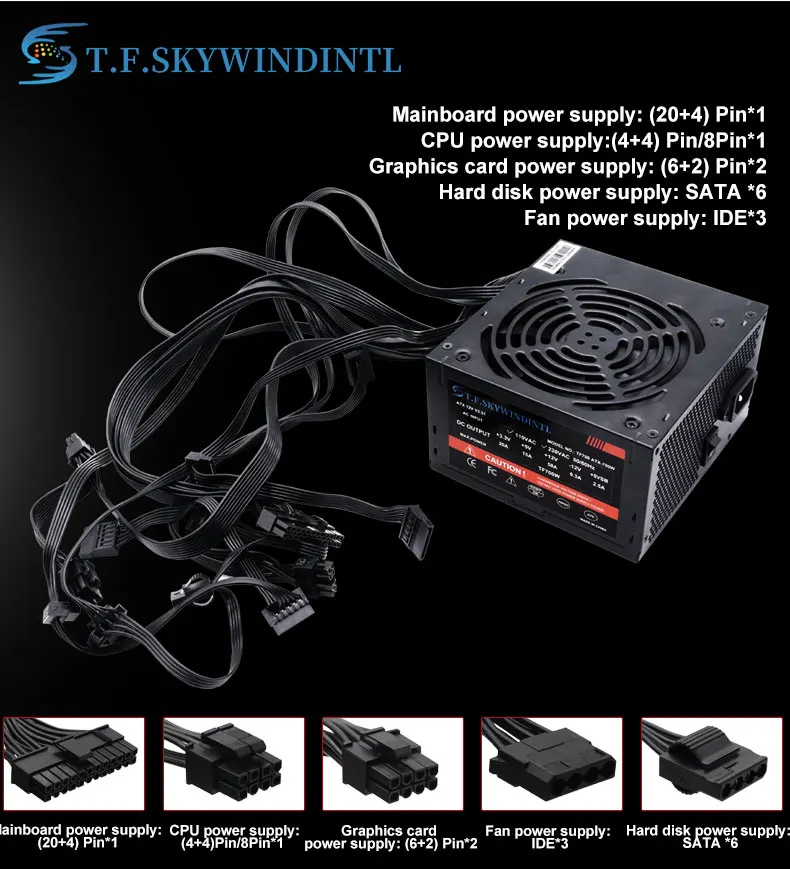 Comprar T.F.SKYWINDINTL-fuente de alimentación de 700w para ordenador, PC, juegos, 80Plus, fuentes de alimentación estándar