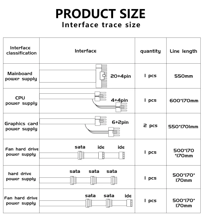 ATX PC Fuente de alimentación Computadora 850W para Game Desktop 220V
