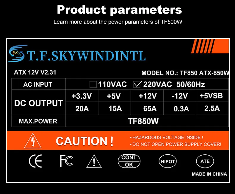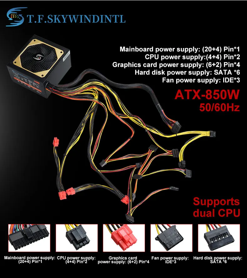 Comprar T.F.SKYWINDINTL-fuente de alimentación para PC, 850 W, 850 vatios, ATX, 220V