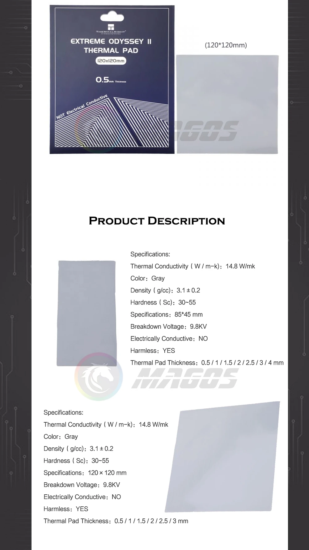 Comprar Thermalright-almohadilla térmica EXTREME ODYSSEY II 14,8 w/mk, CPU no conductora/tarjeta GPU, alfombrilla de refrigeración por agua de 85x45/120x120mm