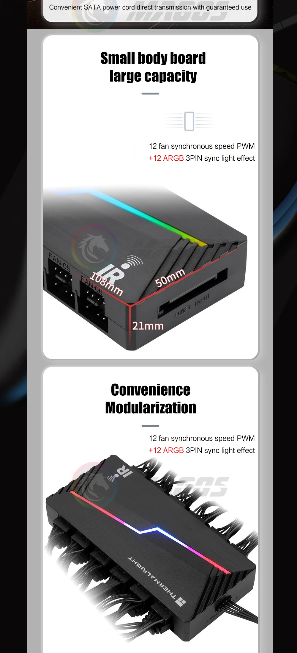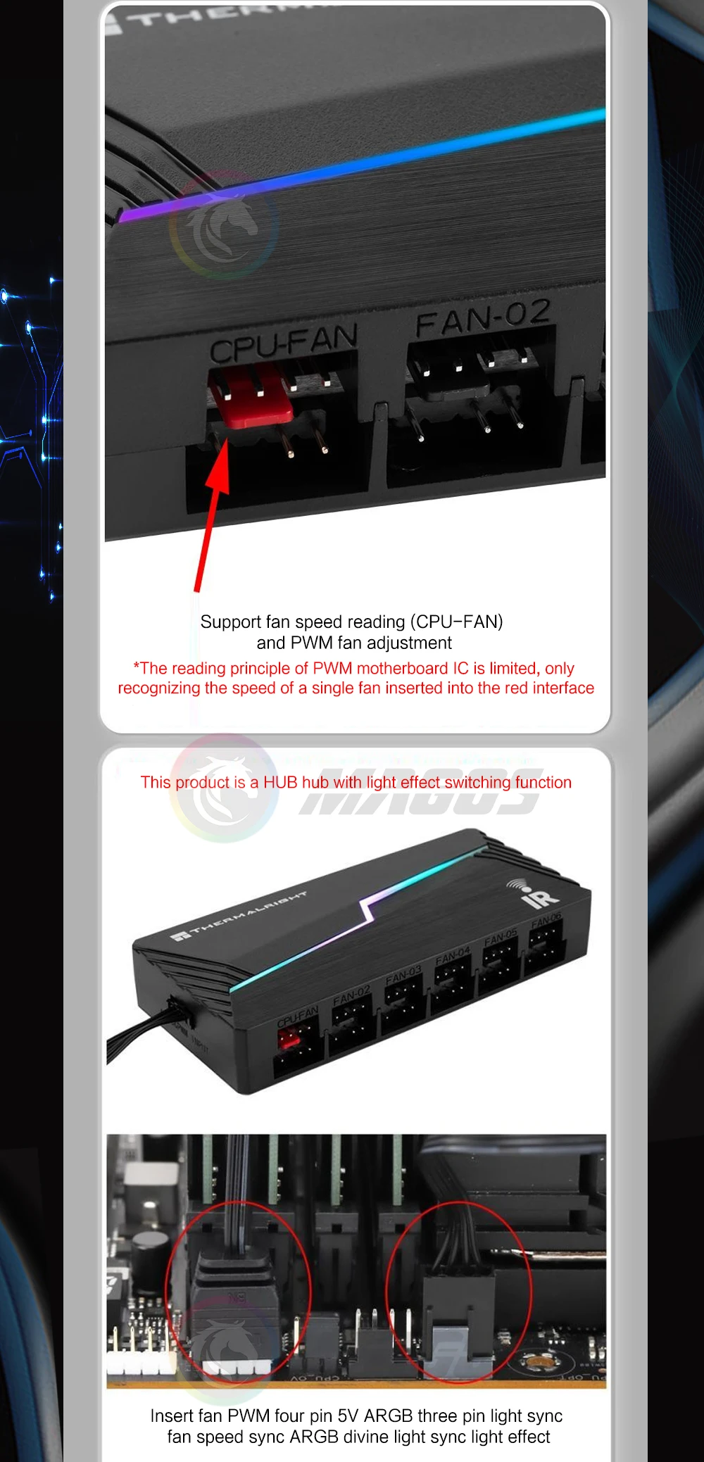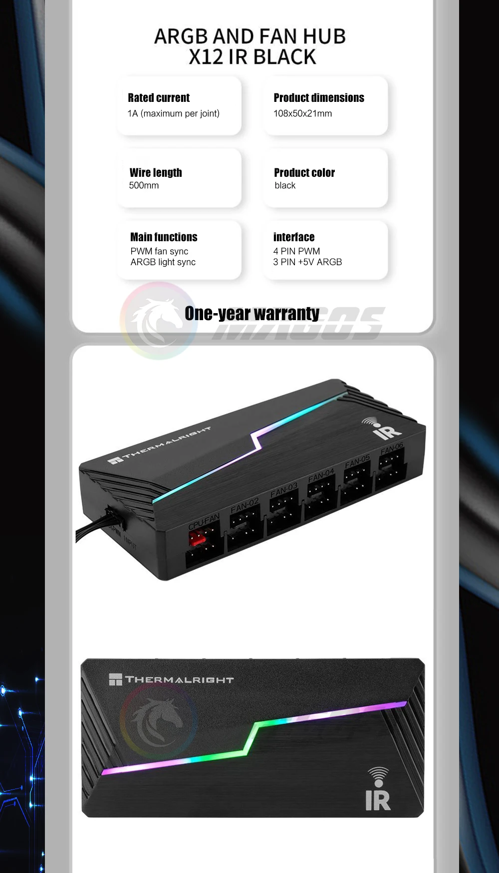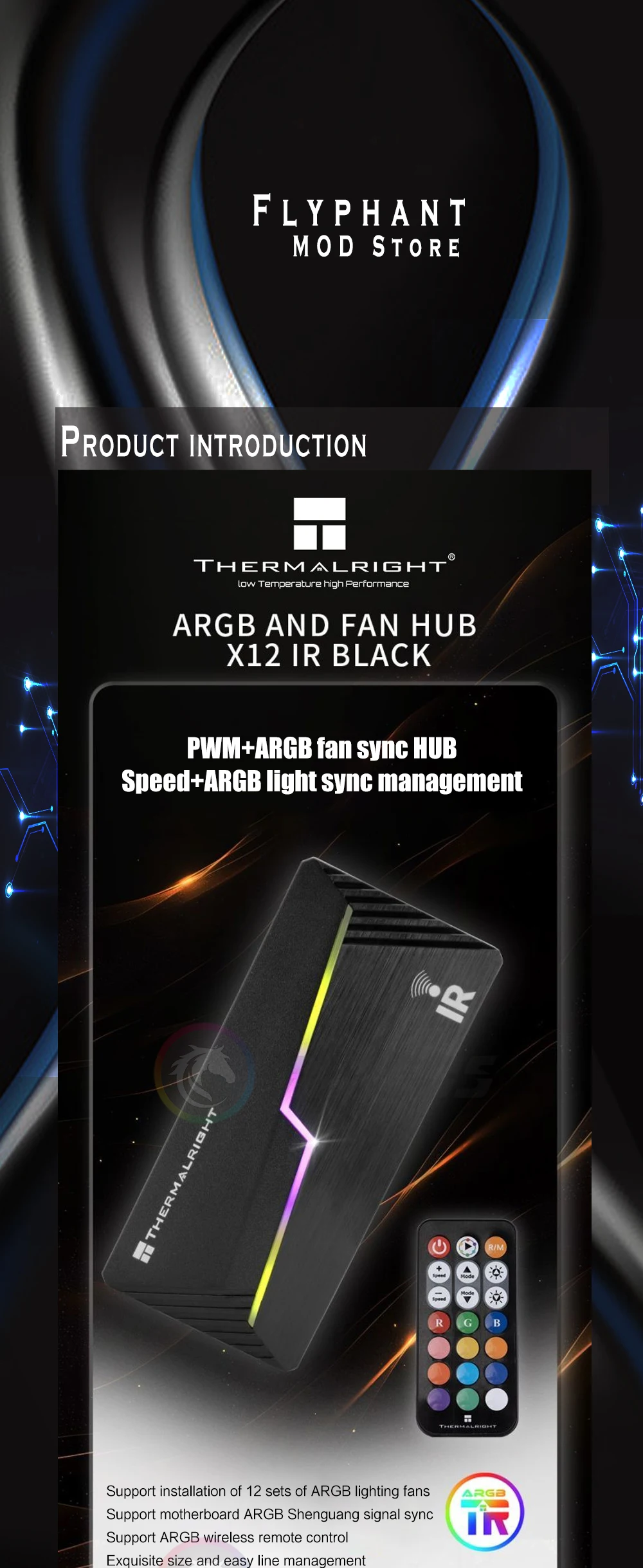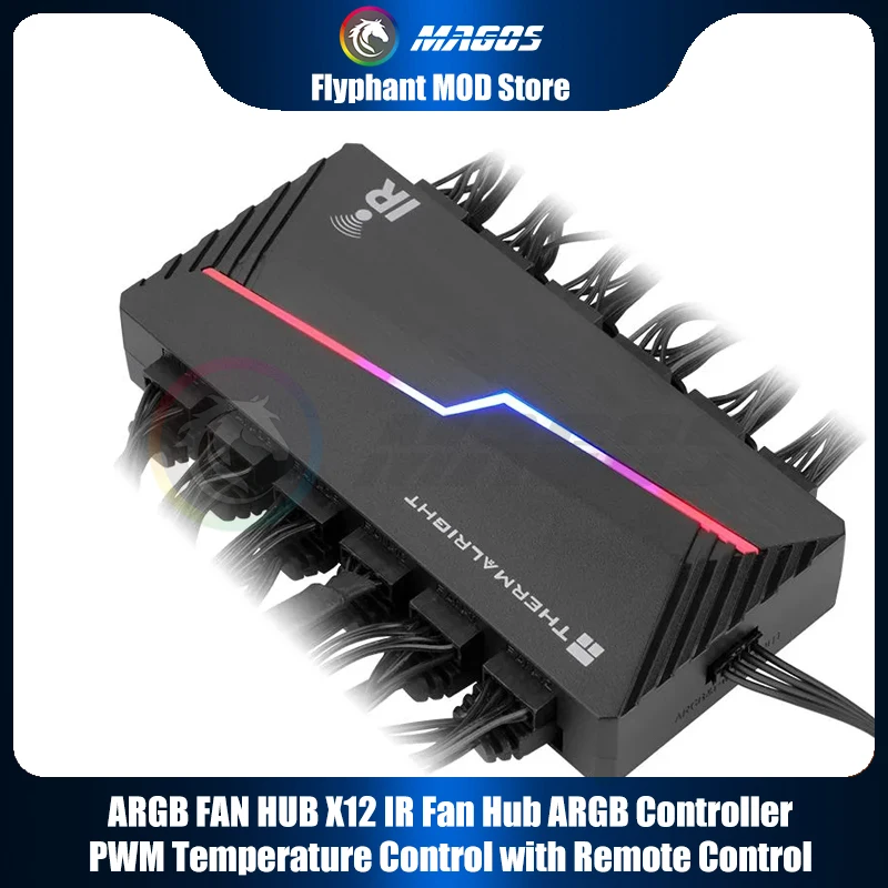Comprar Thermalright ARGB y FAN HUB X12 IR Negro, 3 pines ARGB + 4 pines PWM 2 en 1 Control de temperatura con control remoto