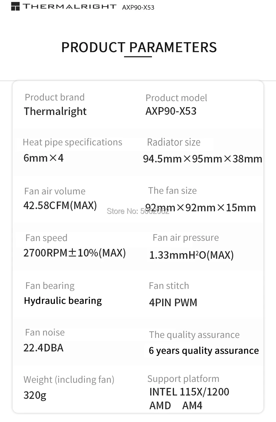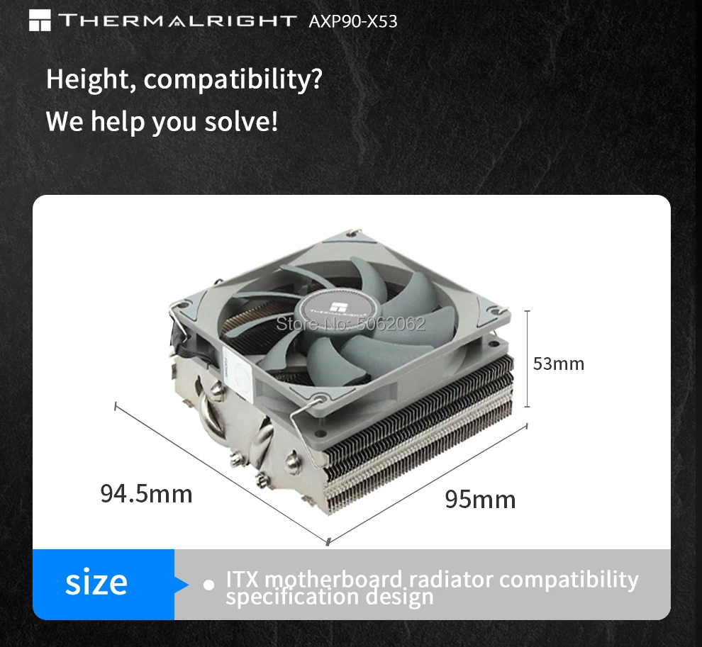 Comprar Thermalright-AXP90-X53 4 tubos de calor de 53mm, enfriador de CPU de chasis fino con ventilador PWM de 92mm, adecuado para Intel 115x1200 AMD