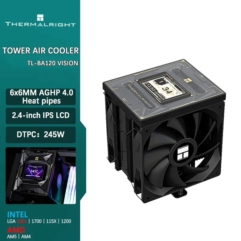 Comprar Thermalright Burst Assassin 120 VISION 6x6mm AGHP 4,0 Heatpipe Tower enfriador de aire 2,4 pulgadas IPS LCD para INTEL LGA1851 1700 AMD AM5