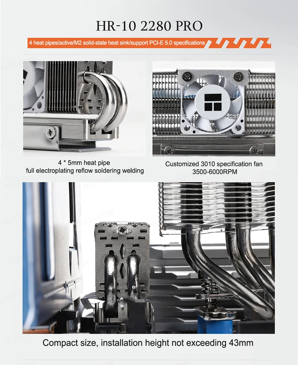 Comprar Thermalright-disipador de calor HR-10 2280 PRO M.2, unidad de estado sólido, 5mm, doble tubo de calor SSD, radiador de aluminio, almohadilla de silicona de 14,8 W