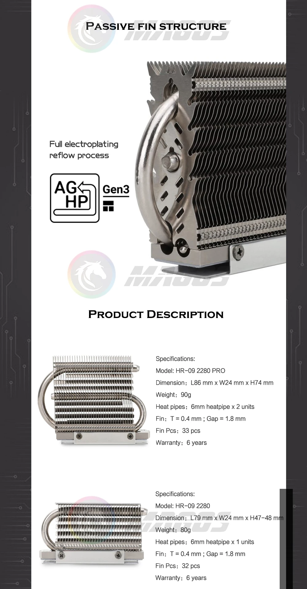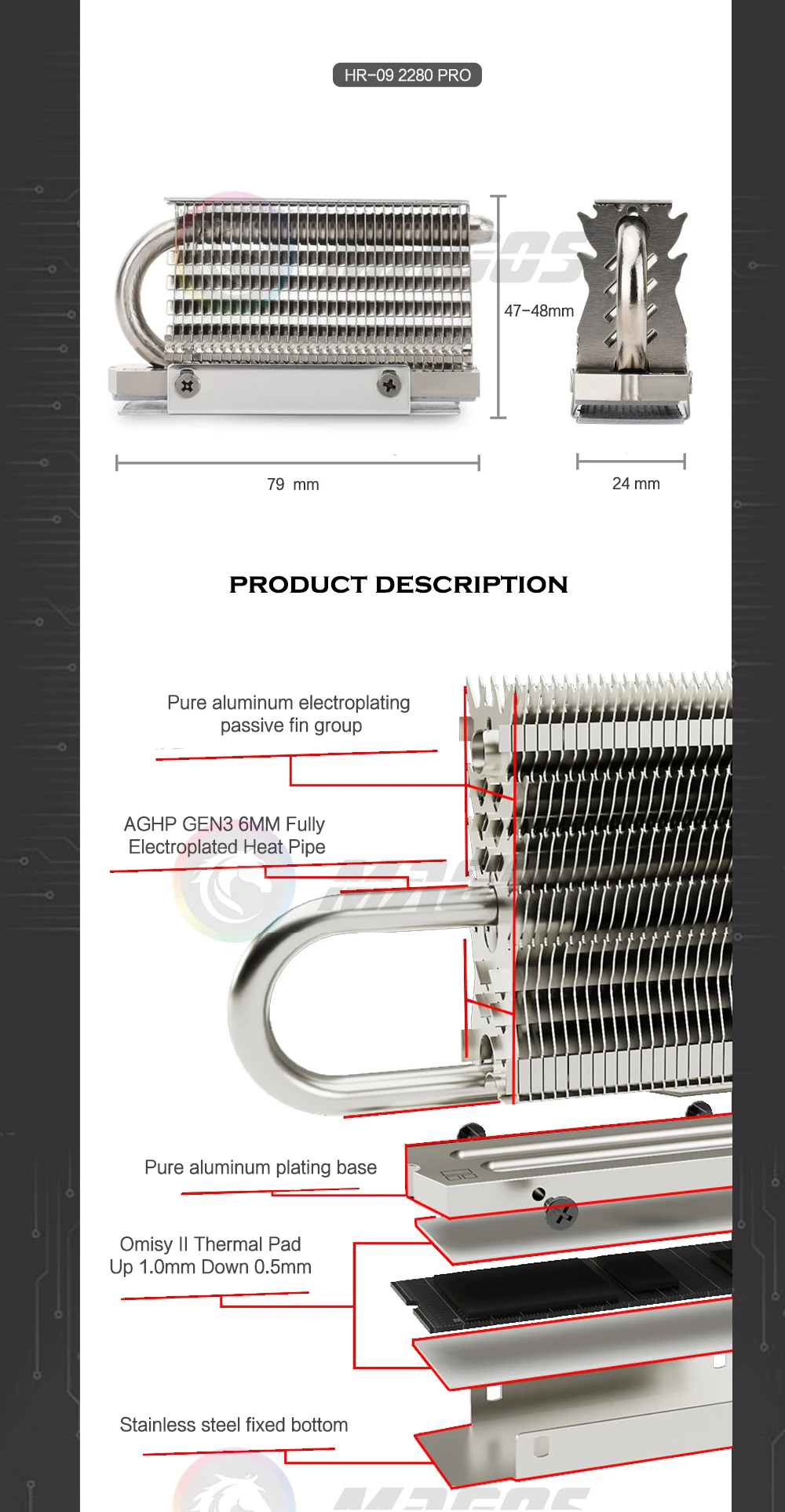 Comprar Thermalright-disipador térmico HR-09 2280 PRO m.2, radiador Coolig de estado sólido, 14,8 W/MK, chaleco Nvme, Enfriador de aluminio