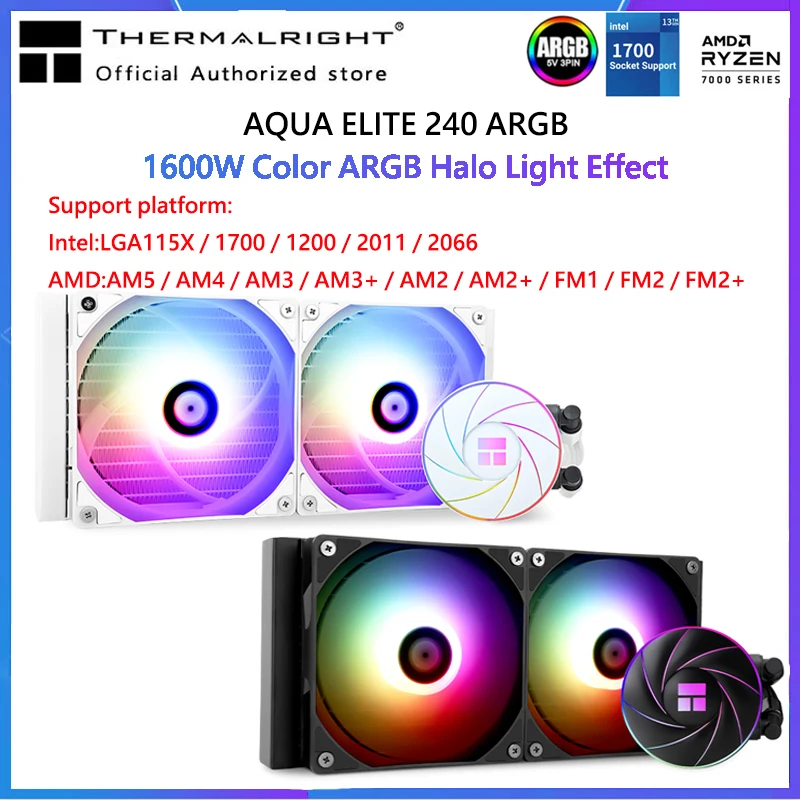 Comprar Thermalright-enfriador de agua para CPU, radiador de refrigeración líquida para PC, AQUA ELITE 240 ARGB, 240mm, LGA1700, 2011, 115X, AM4, AM5