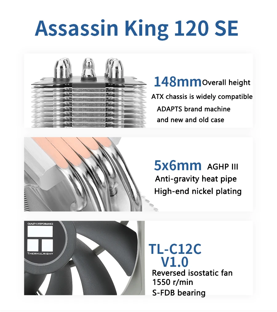 Comprar Thermalright-enfriador de CPU AK120 SE ARGB White 5 con 4 pines PWM 120mm, refrigeración de CPU para LGA115x 1700 2066 AMD AM4 AM5