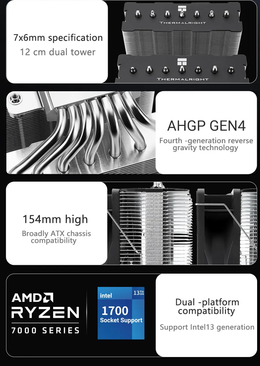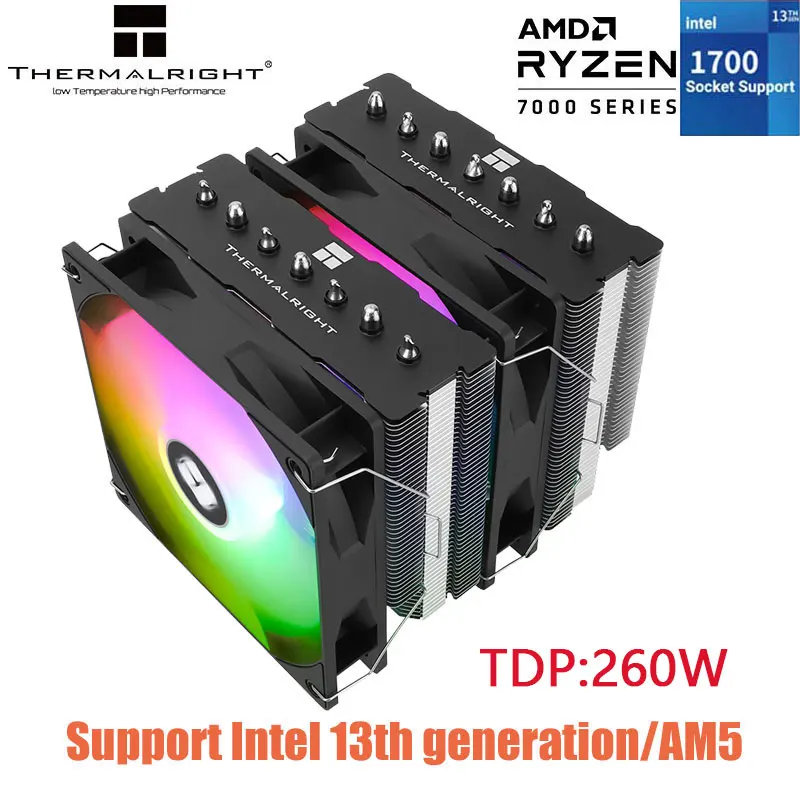 Comprar Thermalright-enfriador de CPU de doble Torre PS120 SE 7 AGHP, radiador de aire de cobre puro PWM de 4 pines para LGA115X 1700 AMD AM4 AM5