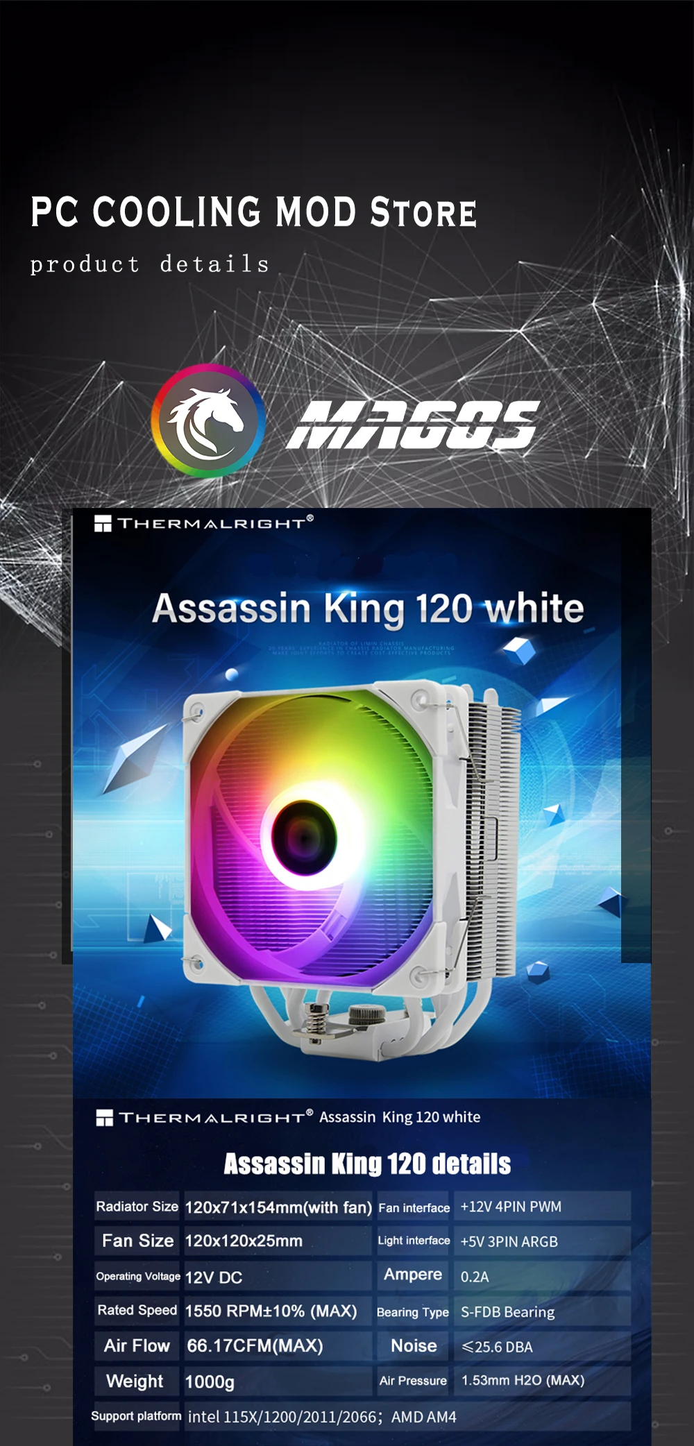 Comprar Thermalright-enfriador de CPU de escritorio para Intel 115x2011 2066 AMD AM4, radiador de torre de CPU, disipador térmico PWM RGB, ventilador M/B SYNC negro/blanco