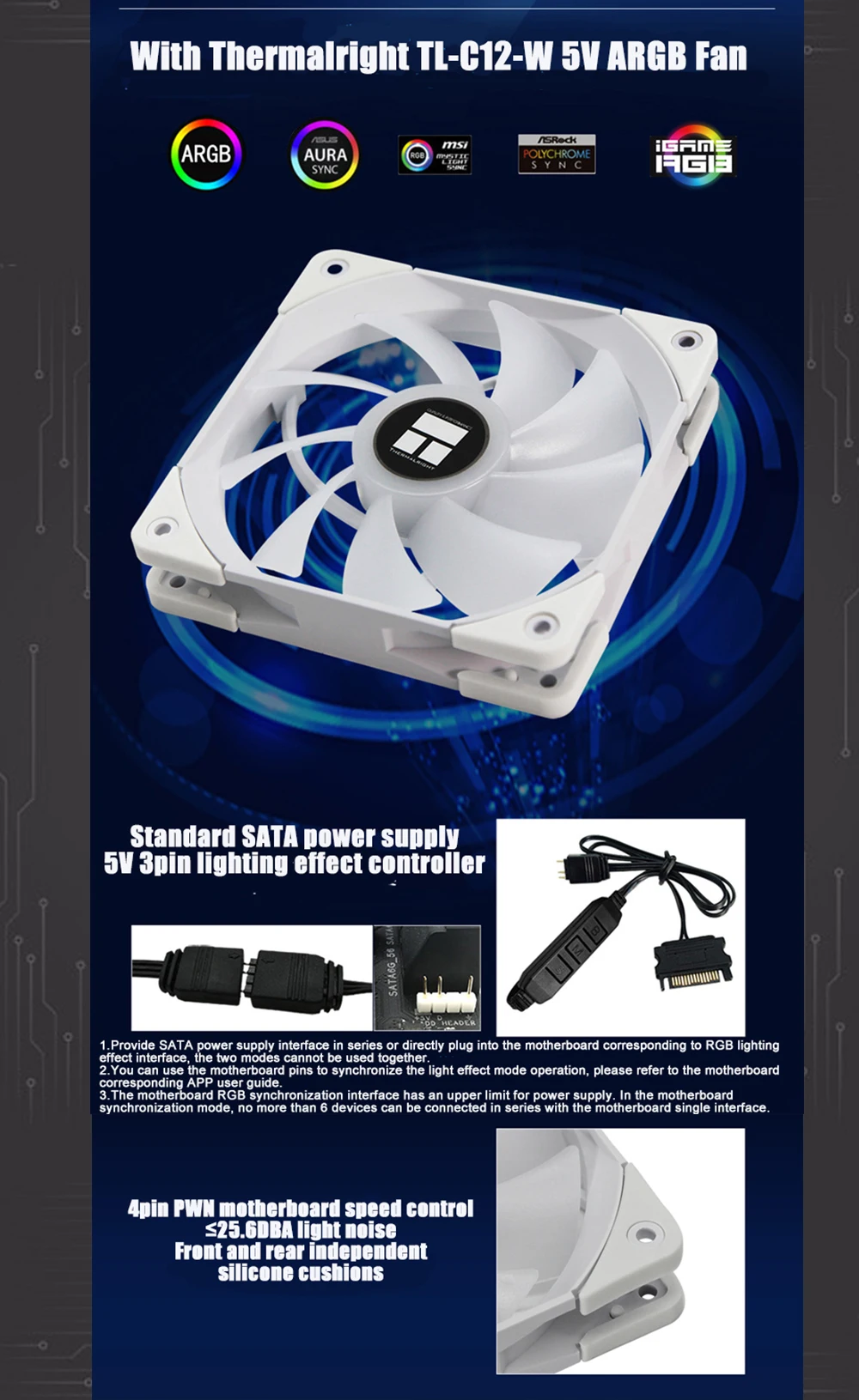 Refrigerador de CPU de escritorio Thermalright para Intel 115x2011 2066 AMD AM4, disipador de calor de radiador de CPU de Torre PWM RGB ventilador M/B SYNC negro/blanco