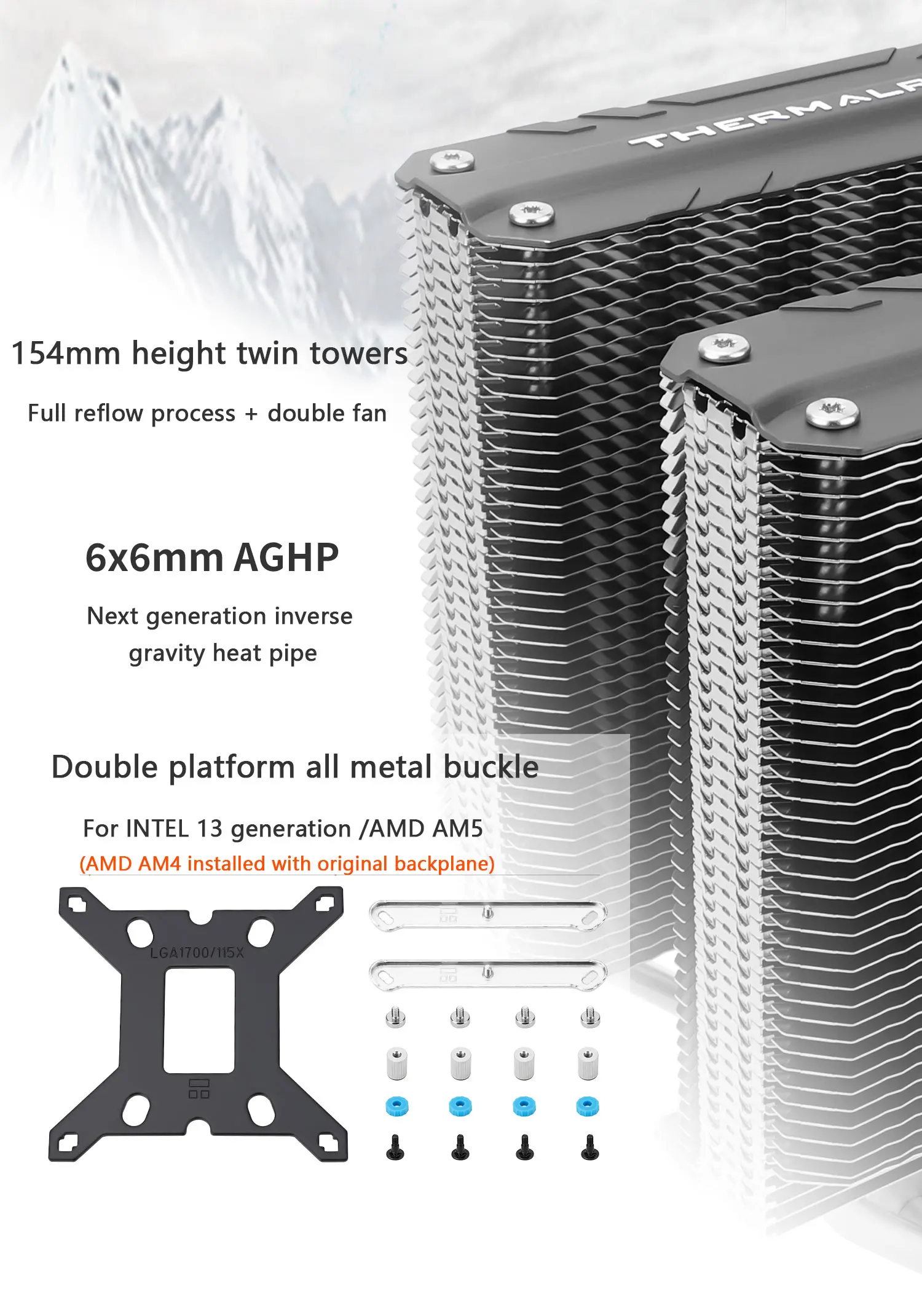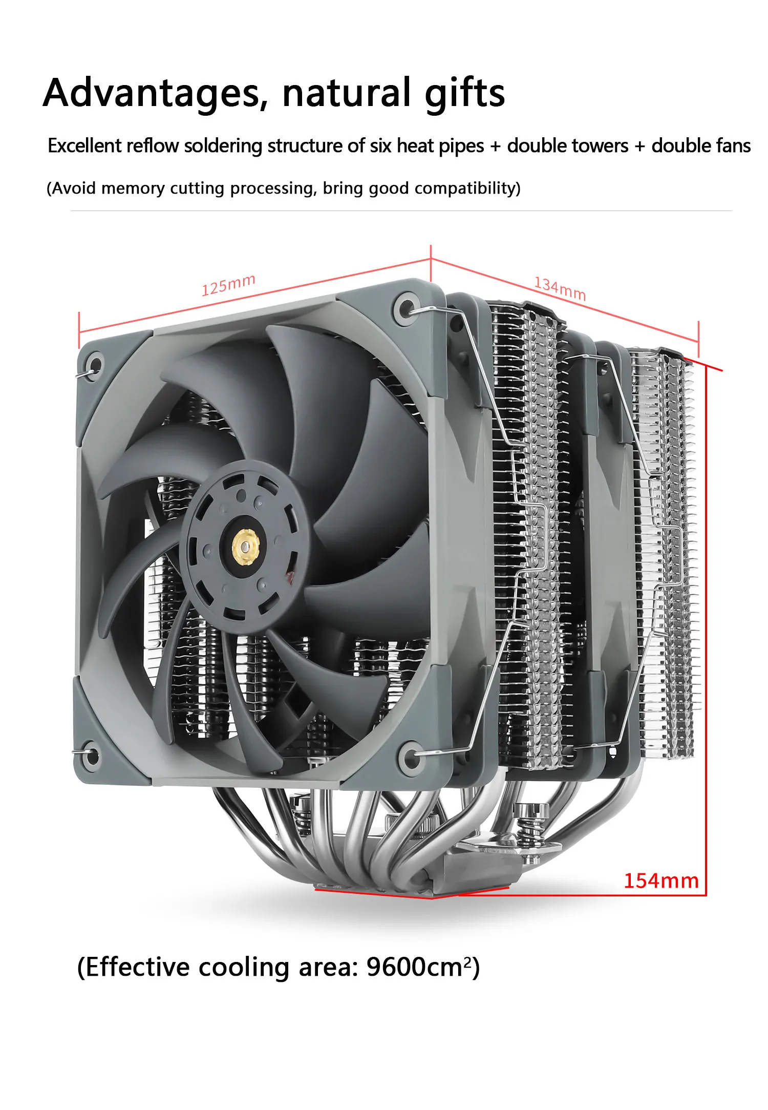 Comprar Thermalright-enfriador de CPU FT120 6 AGHP TDP265w, doble Torre, 4 pines, PWM, radiador de aire de cobre puro para LGA115X 1700 2011 AMD AM4