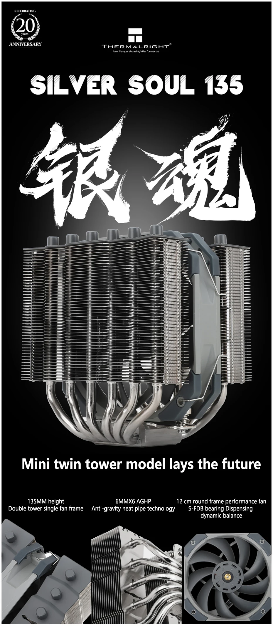 Comprar Thermalright-enfriador de CPU SS135 Silver Soul, 6 tubos de calor, AGHP, 135 de altura, mini radiador de doble Torre ITX, refrigeración de aire silenciosa