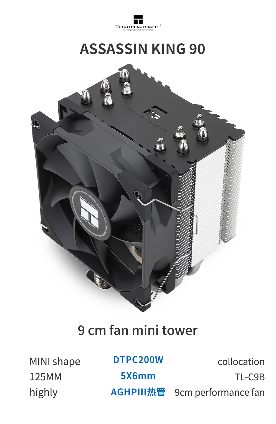 Comprar Thermalright-enfriador de CPU de tubo de calor AK90 5, ventilador de 92mm, PWM, 125mm de alto, Mini radiador de torre para Intel LGA1700 115X 1200 2011 AM5 AM4