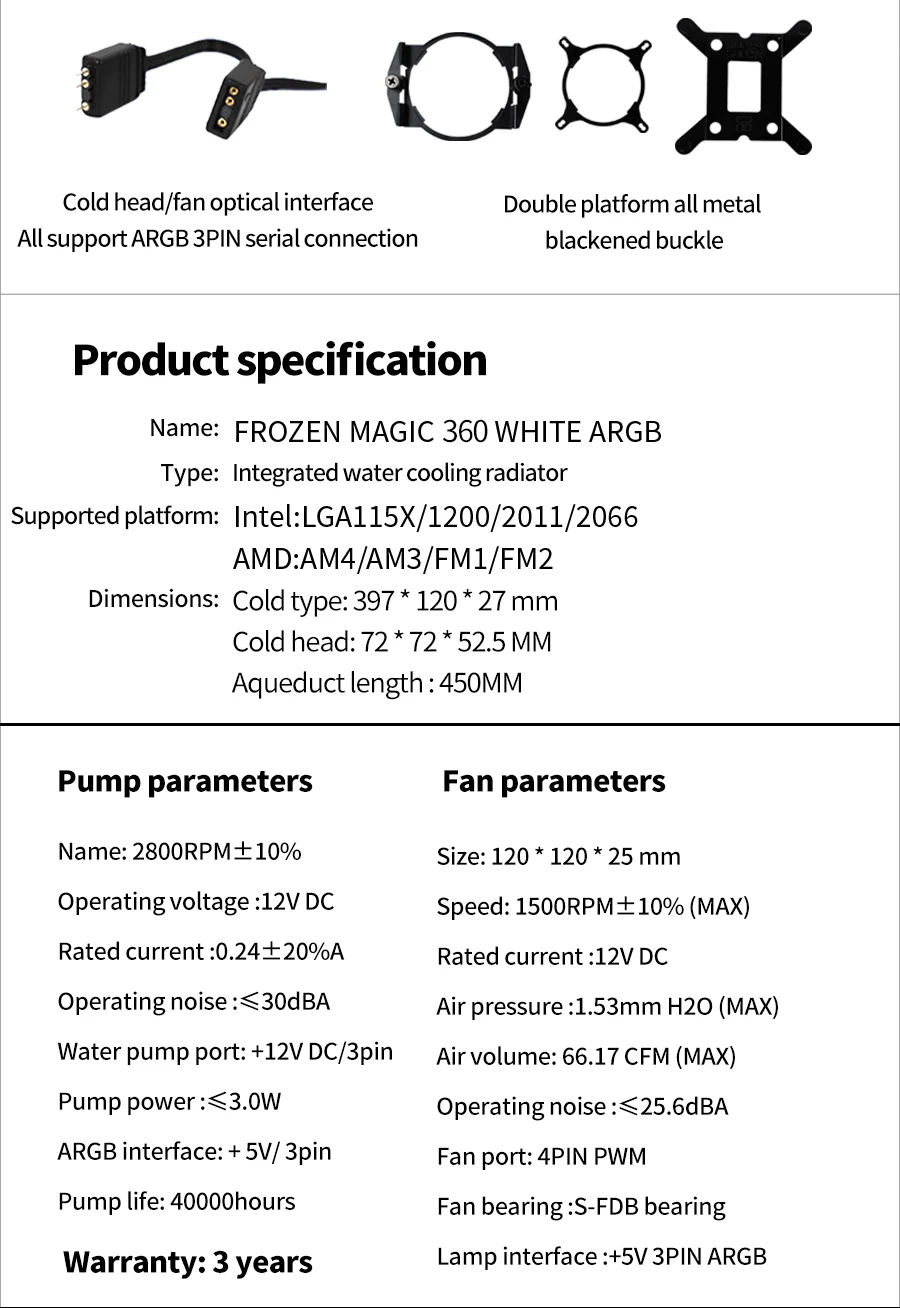 Comprar Thermalright-enfriador de líquido integrado para CPU, radiador de refrigeración por agua de 360mm, Frozen Magic 360 ARGB, Intel 115X 2011 1700 AMD AM4 AM5