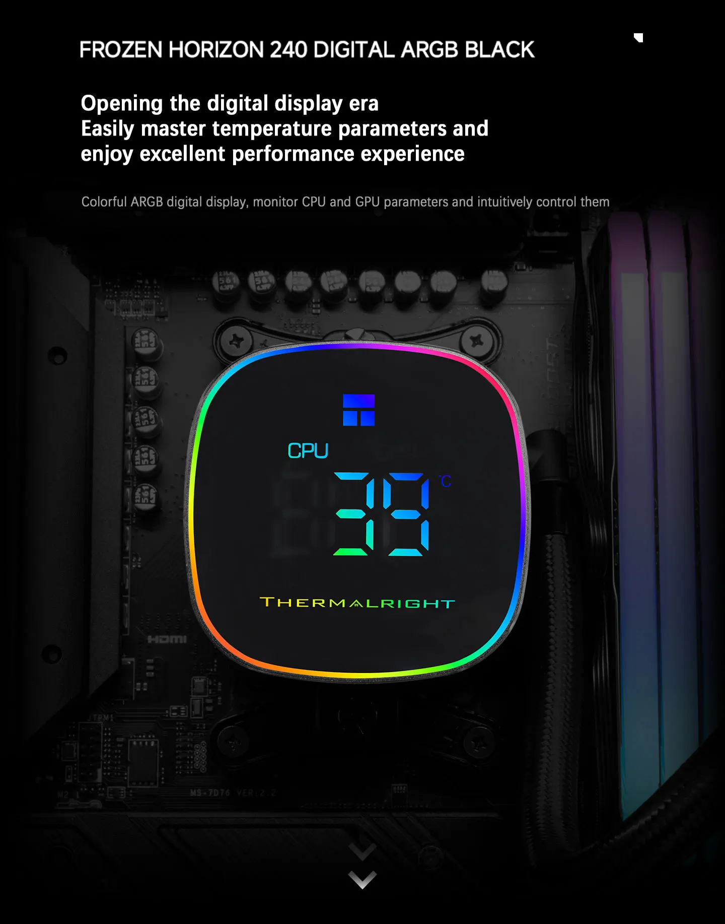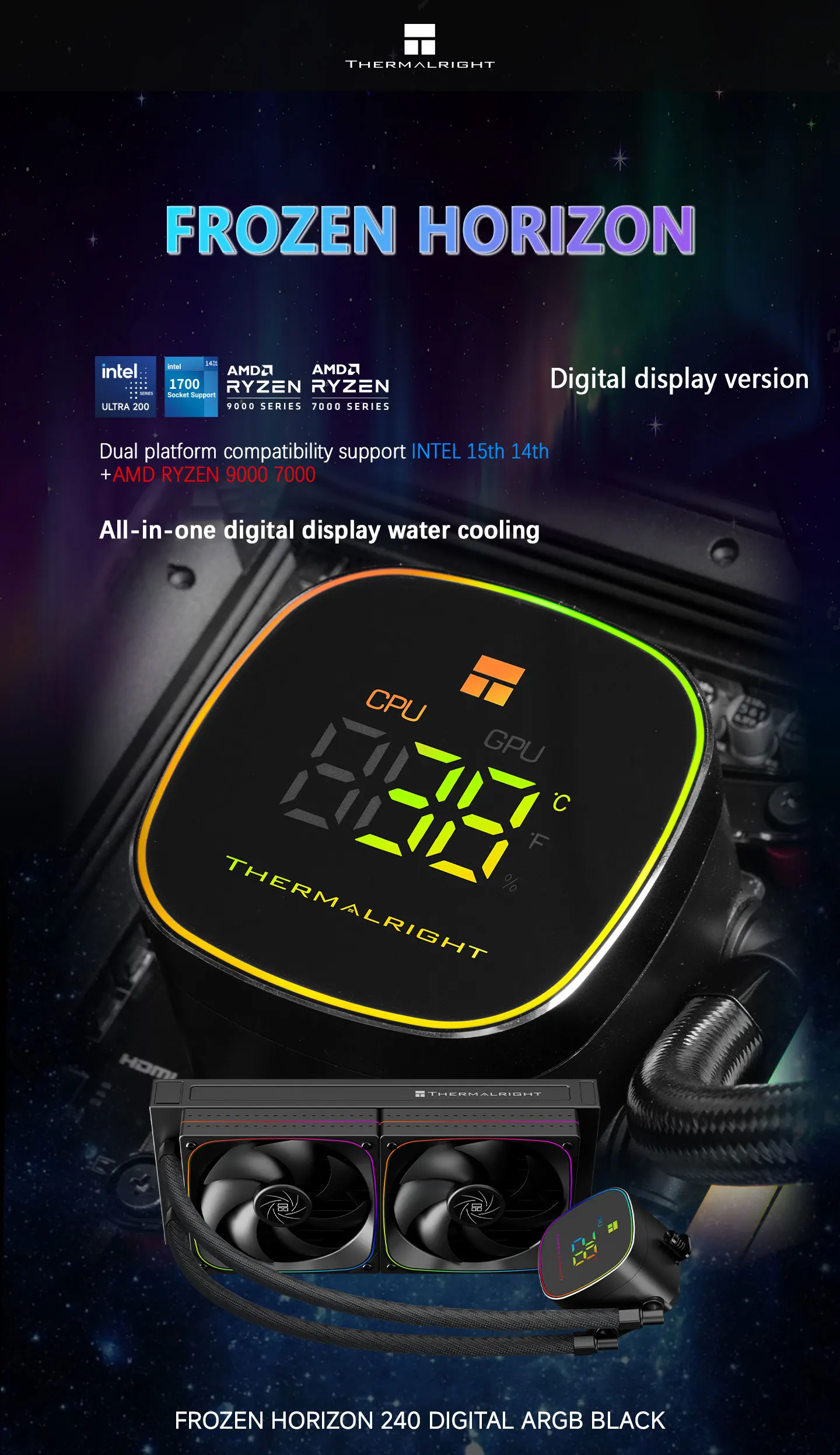 Thermalright FROZEN HORIZON 240 Versión de pantalla digital Cabezal frío desmontable de metal magnético Soporte de ventilador de alto rendimiento LGA1851