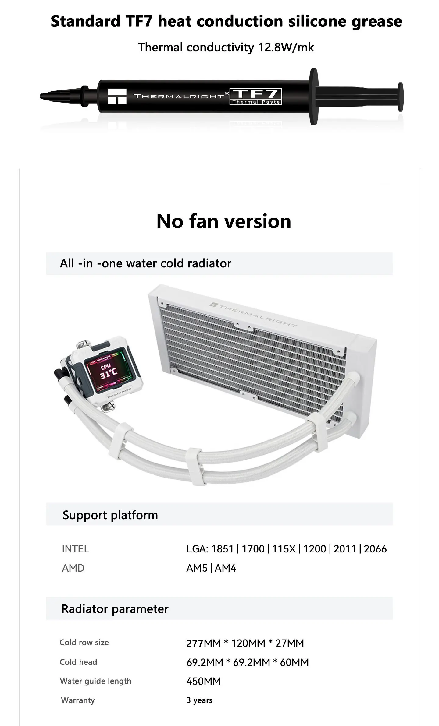 Comprar Thermalright FW 240 X sin versión de ventilador, radiador de agua fría todo en uno pantalla LCD de 2,4 pulgadas pantalla personalizada, compatible con LGA1700
