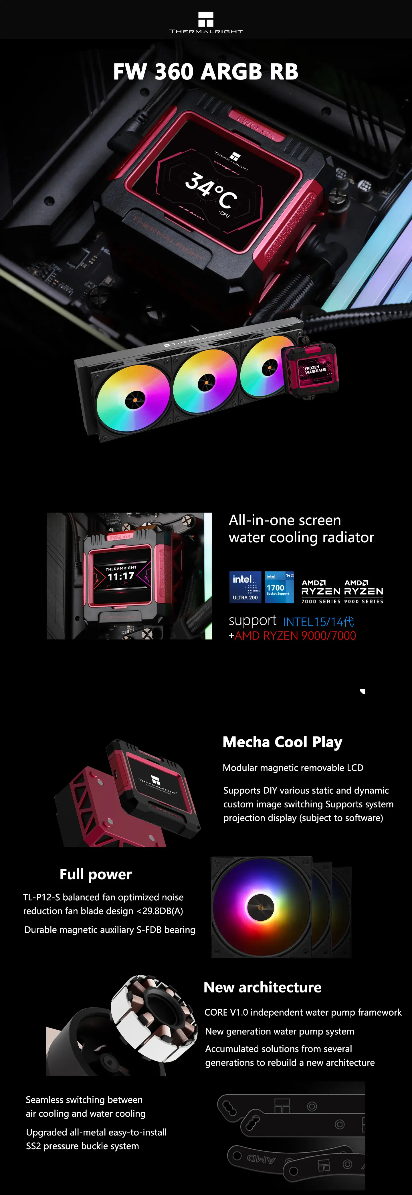 Thermalright FW 360 RB ARGB Radiador de refrigeración por agua todo en uno Soporte LGA1851/1700 AMD AM5 2,4 ''IPS LCD Enfriador de líquidos digital