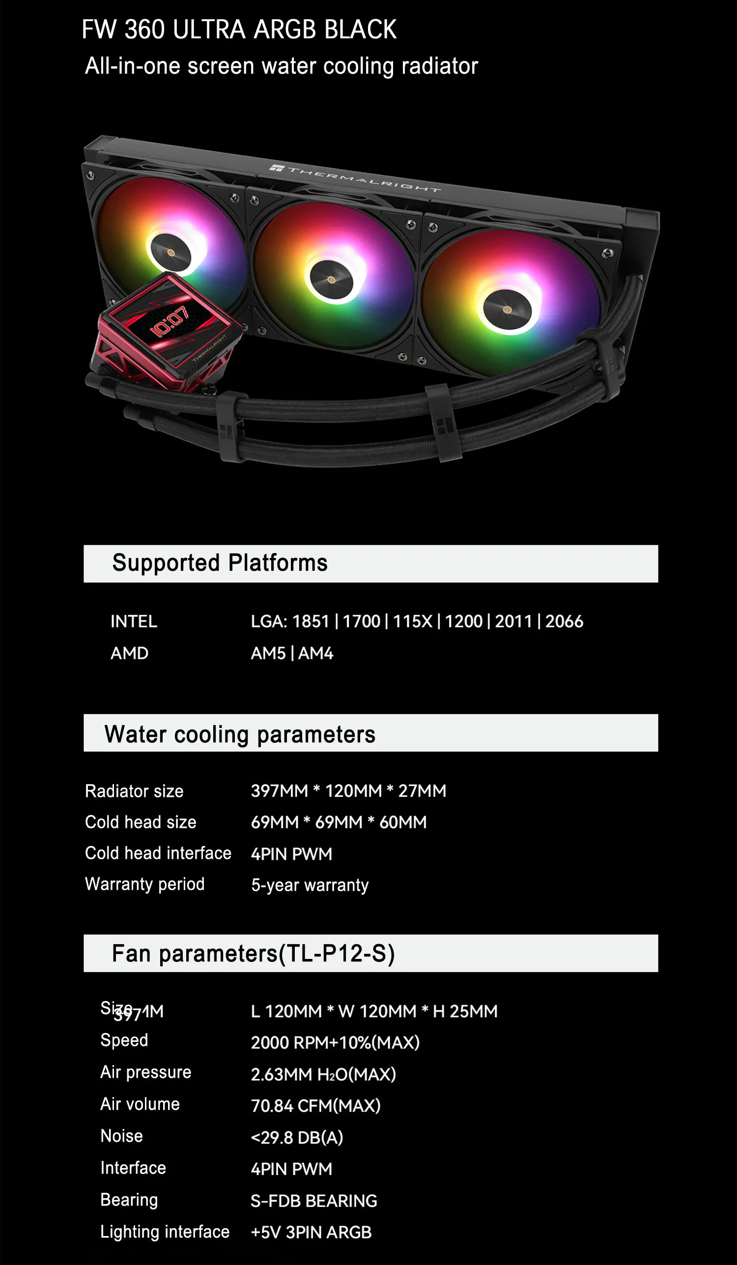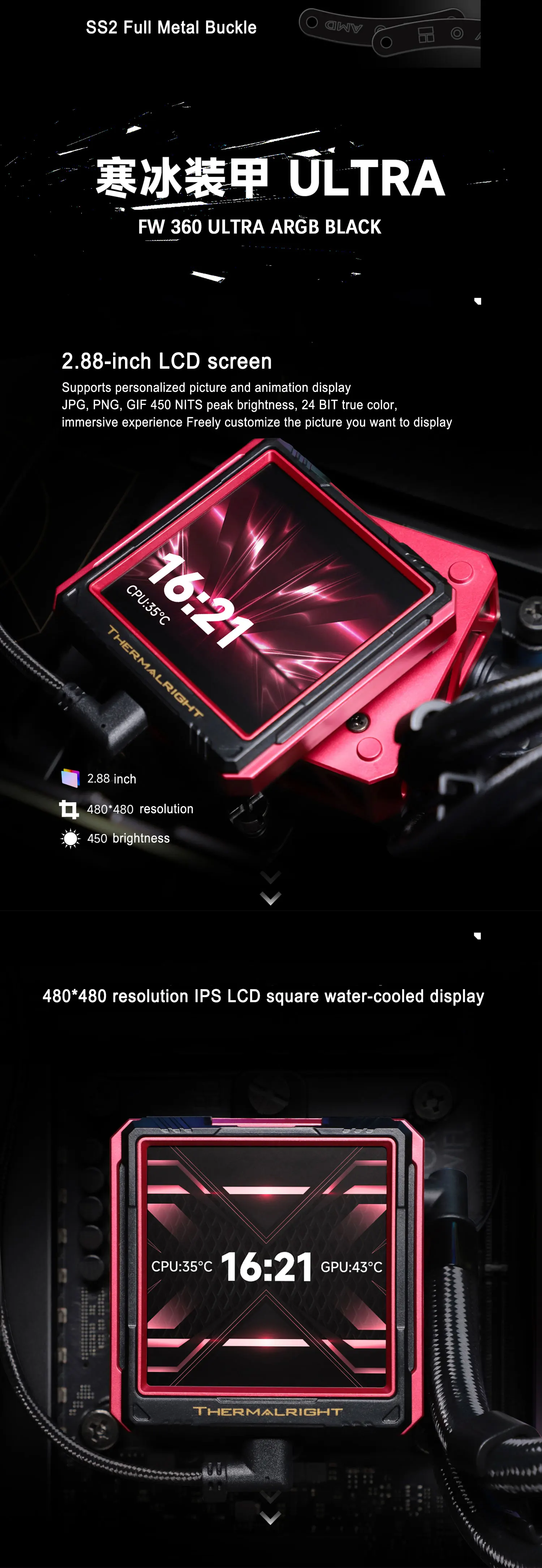 Comprar Thermalright FW 360 ULTRA todo en uno CPU enfriador de agua 2,88 "IPS monitor LCD temas personalizables para LGA1851/1700 AMD AM5
