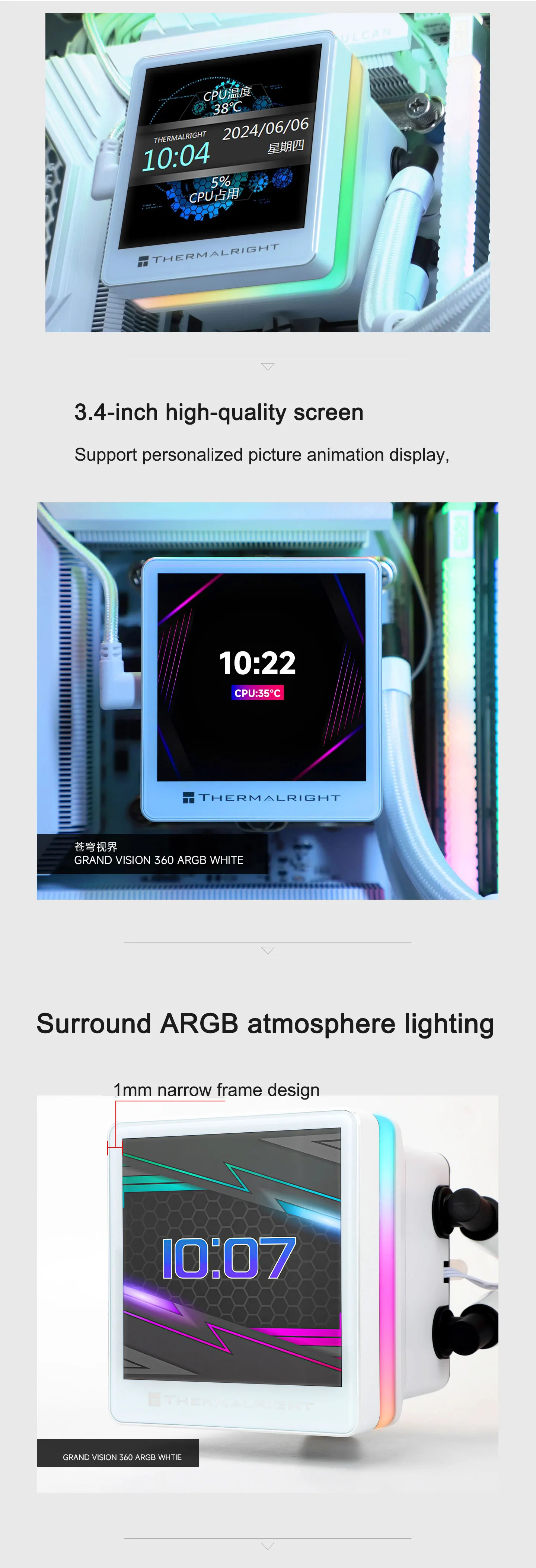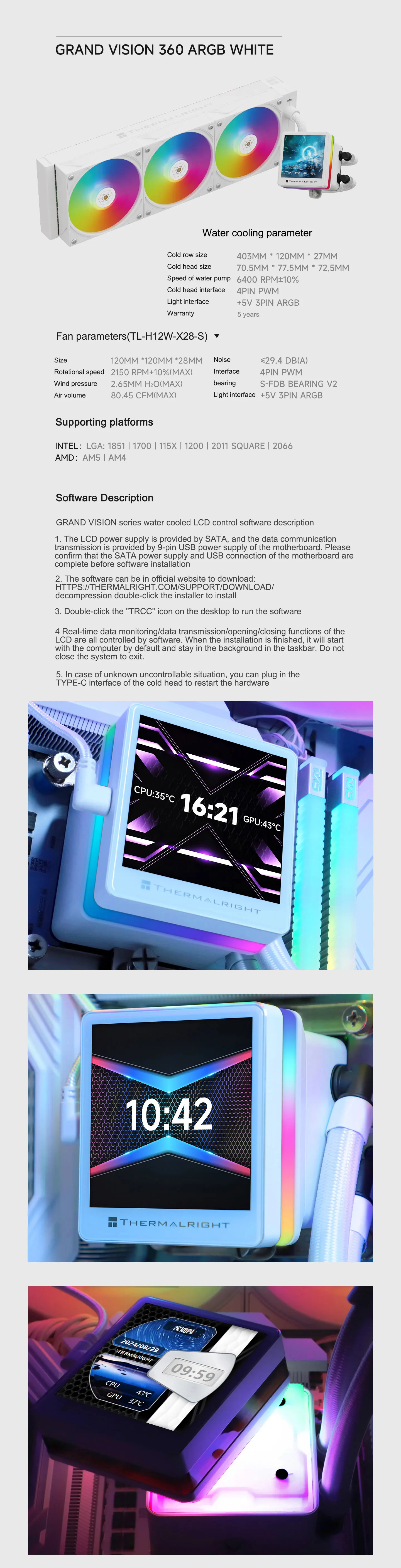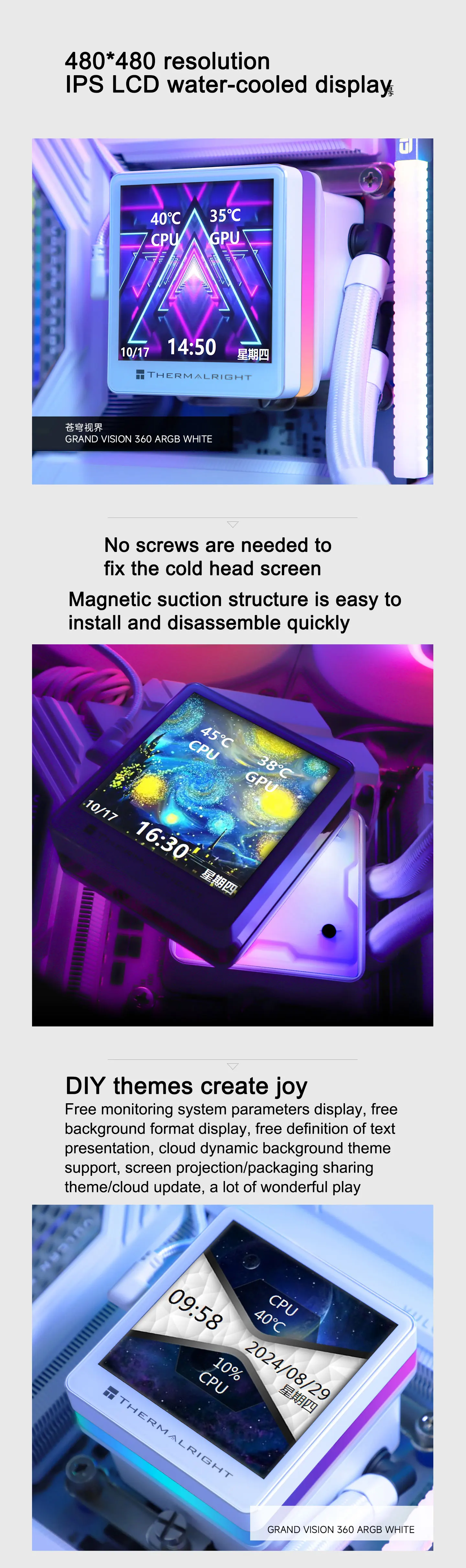 Comprar Thermalright GRAND VISION 360 ARGB Radiador de agua fría todo en uno/pantalla LCD de 3,4 pulgadas/resolución 480*480, LGA1851/1700/AM5