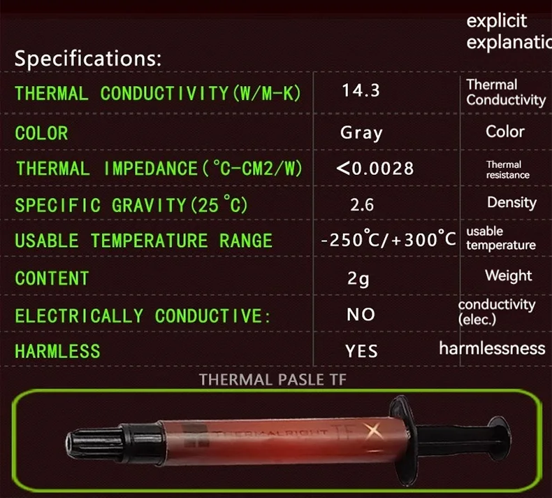 Thermalright TFX 2G Grasa Térmica 14,3 W/mk Grasa Térmica de Silicona Conductividad Ordenador Disipador de Calor Pasta Térmica