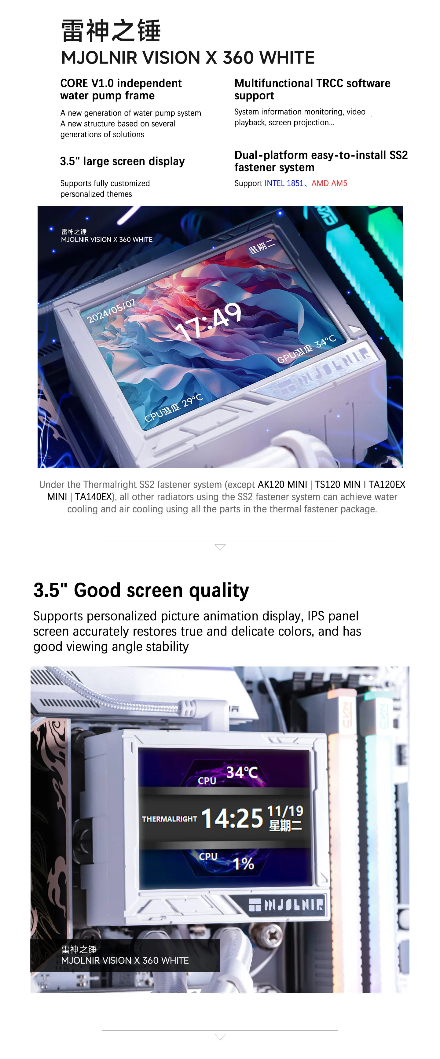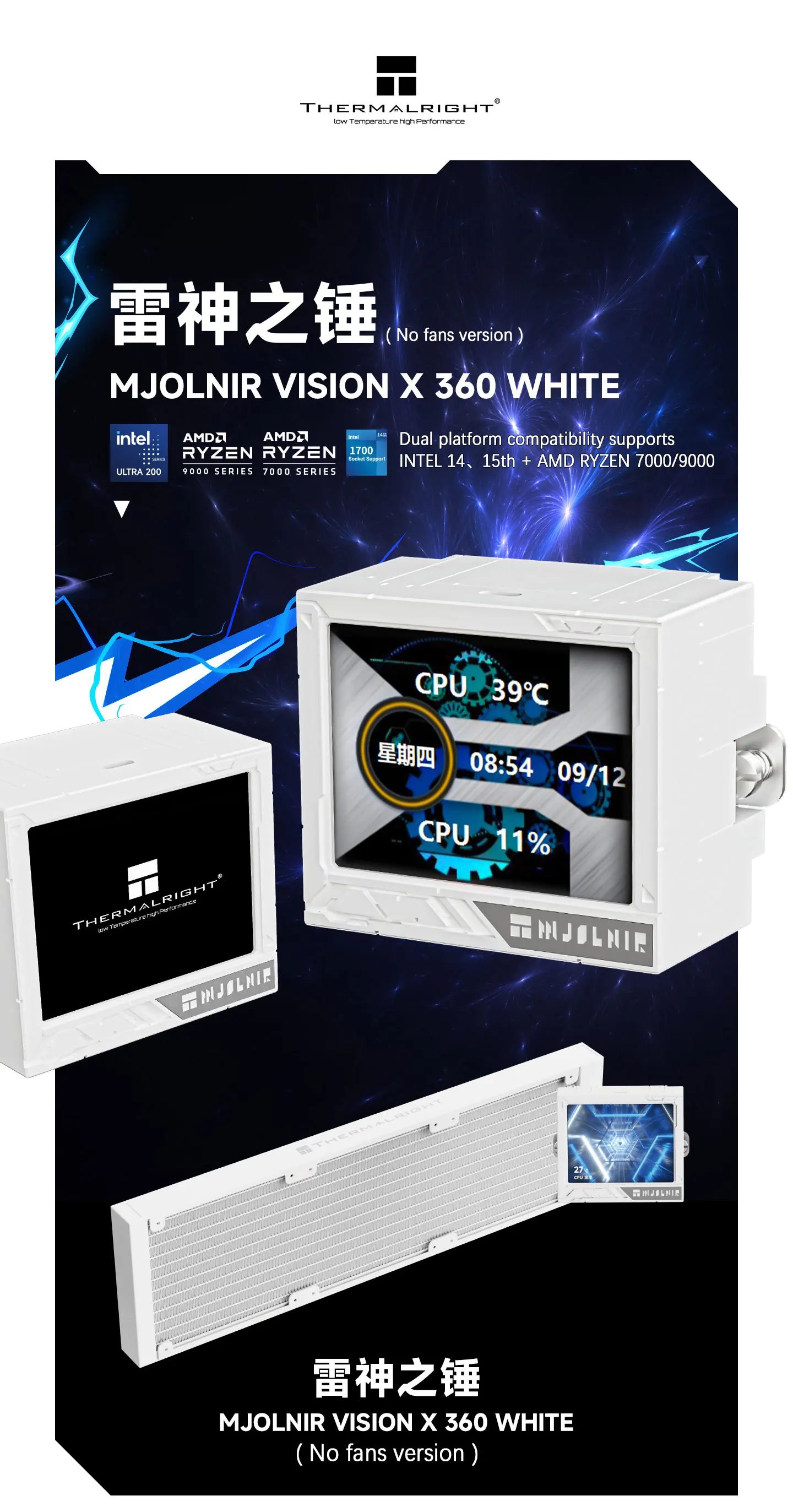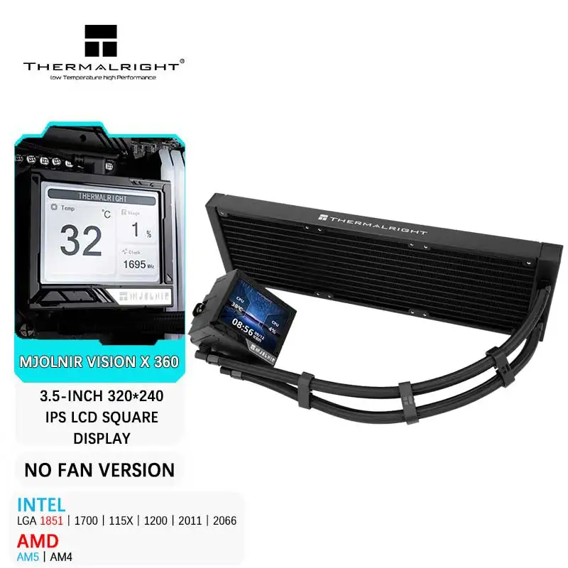 Thermalright MJOLNIR VISION X 360 Versión sin ventiladores Radiador de agua fría todo en uno LCD IPS de 3,5 pulgadas Compatible con LGA1851/1700 AMD AM4/AM5