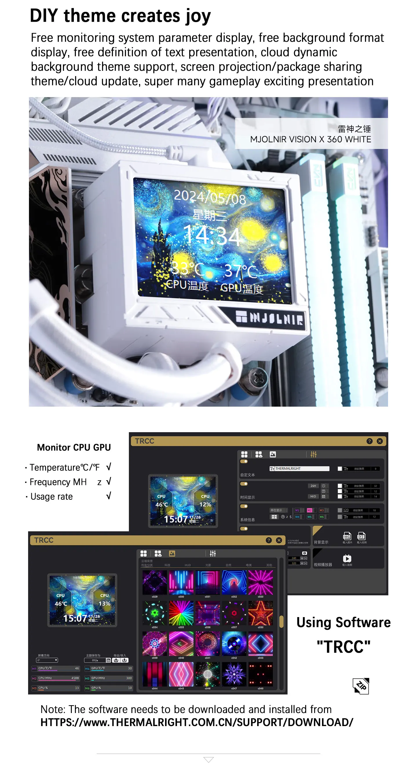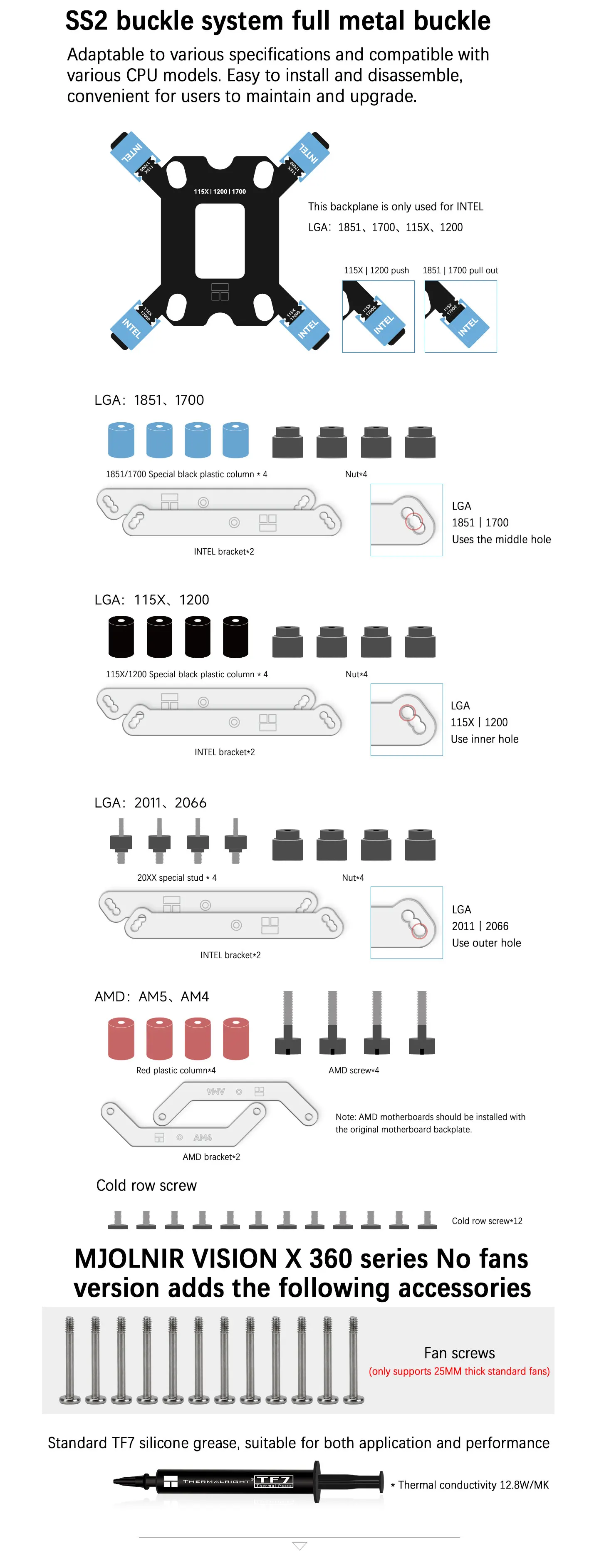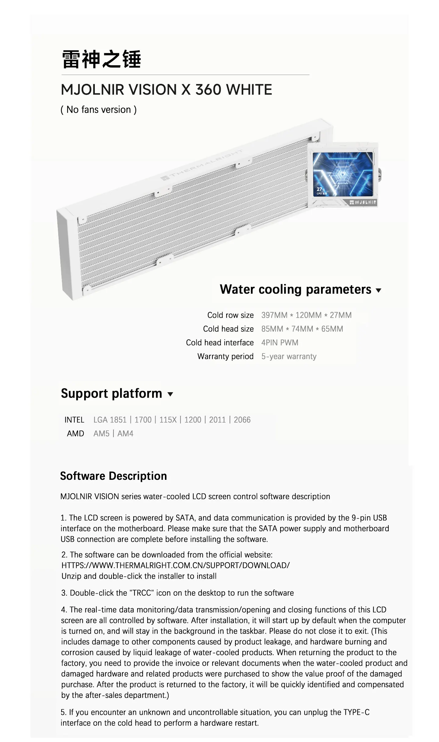 Thermalright MJOLNIR VISION X 360 Versión sin ventiladores Radiador de agua fría todo en uno LCD IPS de 3,5 pulgadas Compatible con LGA1851/1700 AMD AM4/AM5
