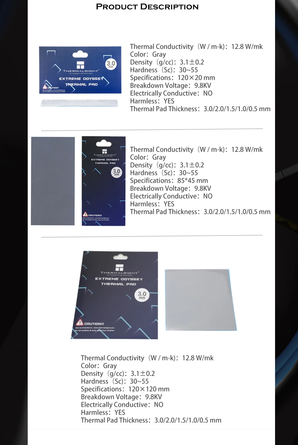 Comprar Thermalright ODYSSEY-almohadilla térmica de silicona, disipación de calor, 12,8 W/mk CPU/GPU, refrigeración por agua, alfombrilla térmica, 85x45mm, 120x120mm, 120x20mm
