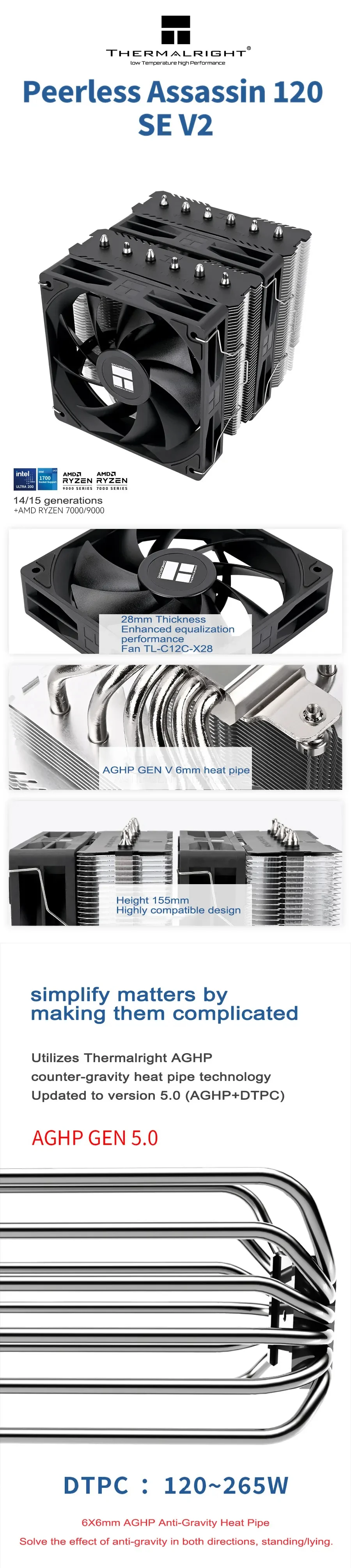Comprar Thermalright Peerless Assassin 120 SE V2 Radiador de refrigeración por aire para caja de computadora, con ventilador/soporte de 120x120x28 mm LGA1851/1700/AM5/AM4