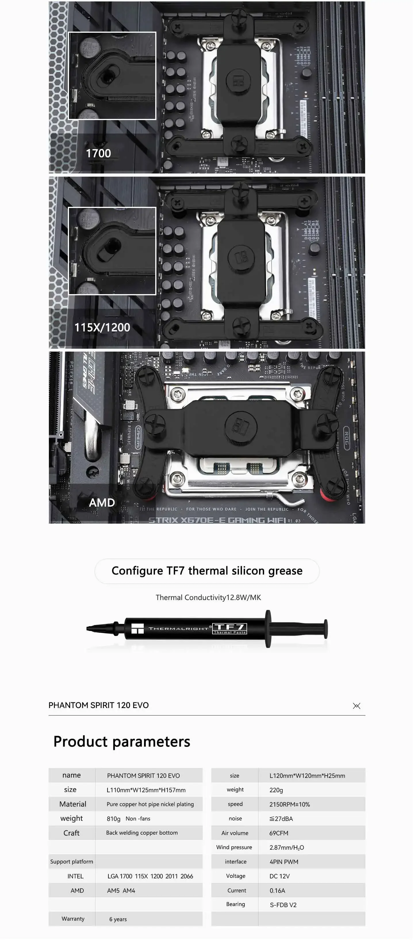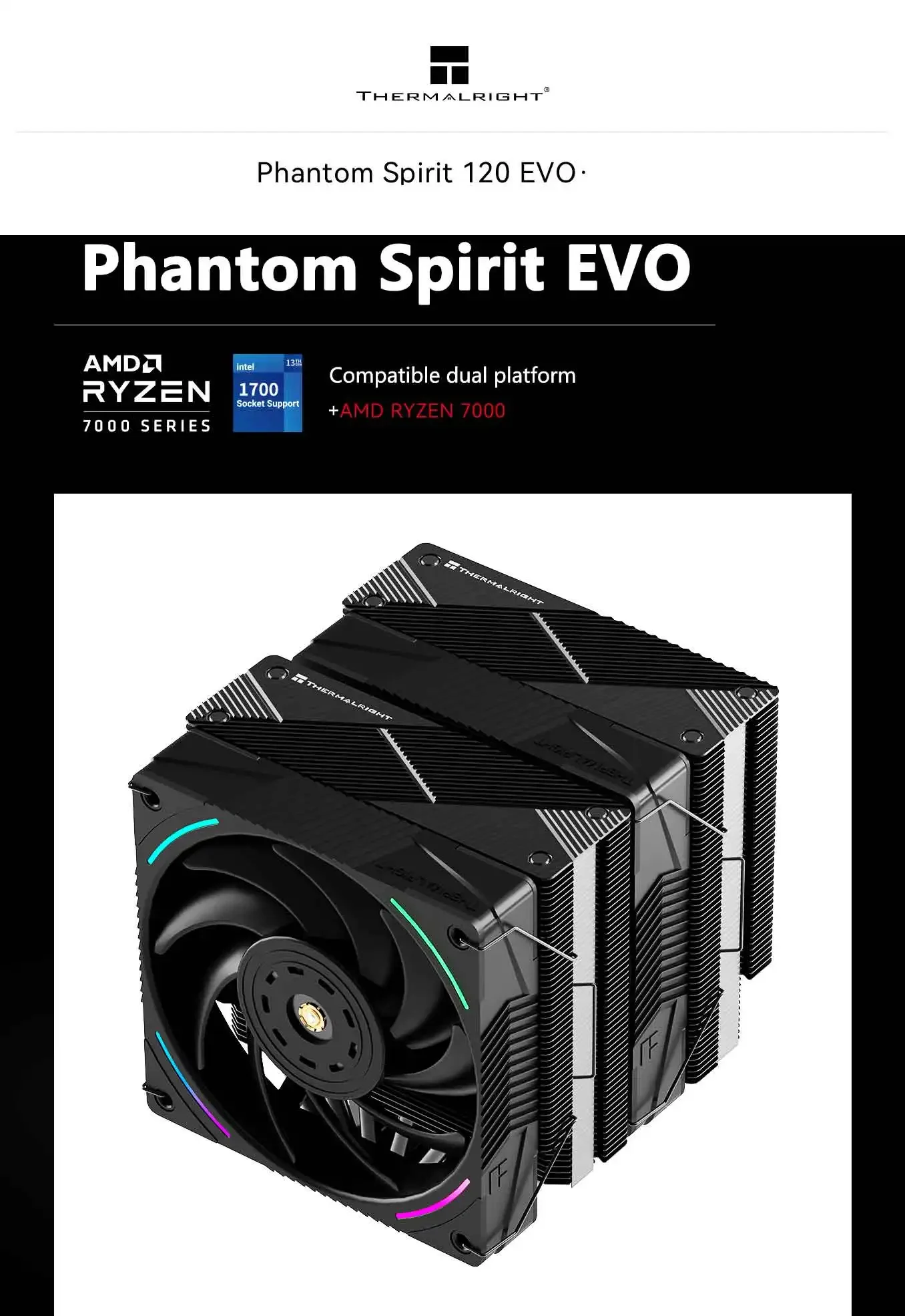 Thermalright Phantom Spirit 120 EVO radiador de doble torre CPU enfriador de aire disipador de calor 7 heatpipes compatible con 1700/115X/AM5/AM4