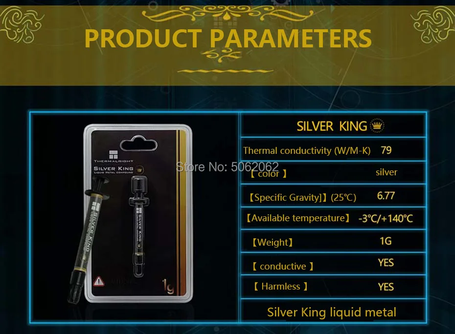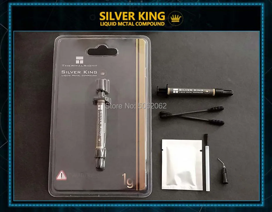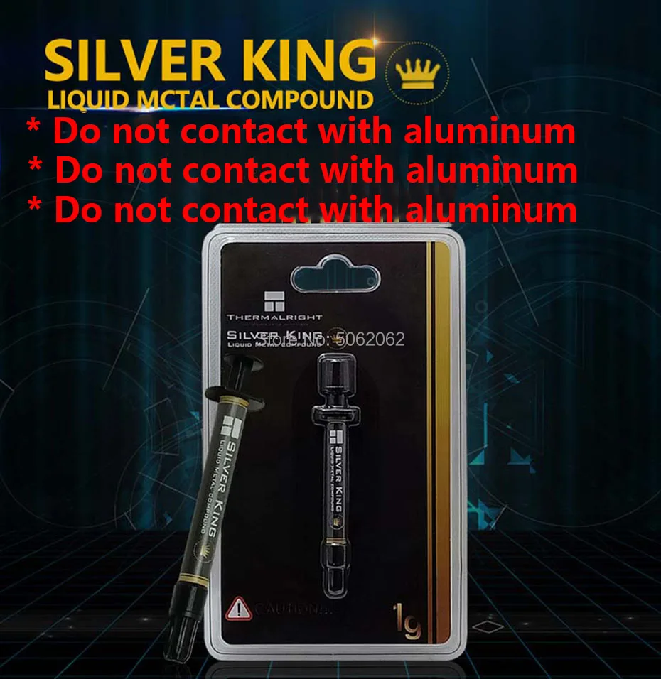 THERMALRIGHT Silver King contains no non-metallic additives (like silicone, oxides, etc.) at all. It also does not contain any solid particles. Due to these properties, THERMALRIGHT Silver King surpasses the best high-performance heat conducting pastes by a multiple. This product for overclockers and gaming players. Do not use with Aluminum.
