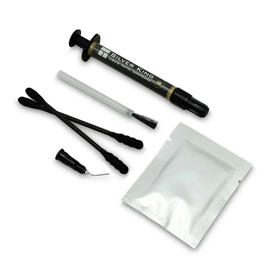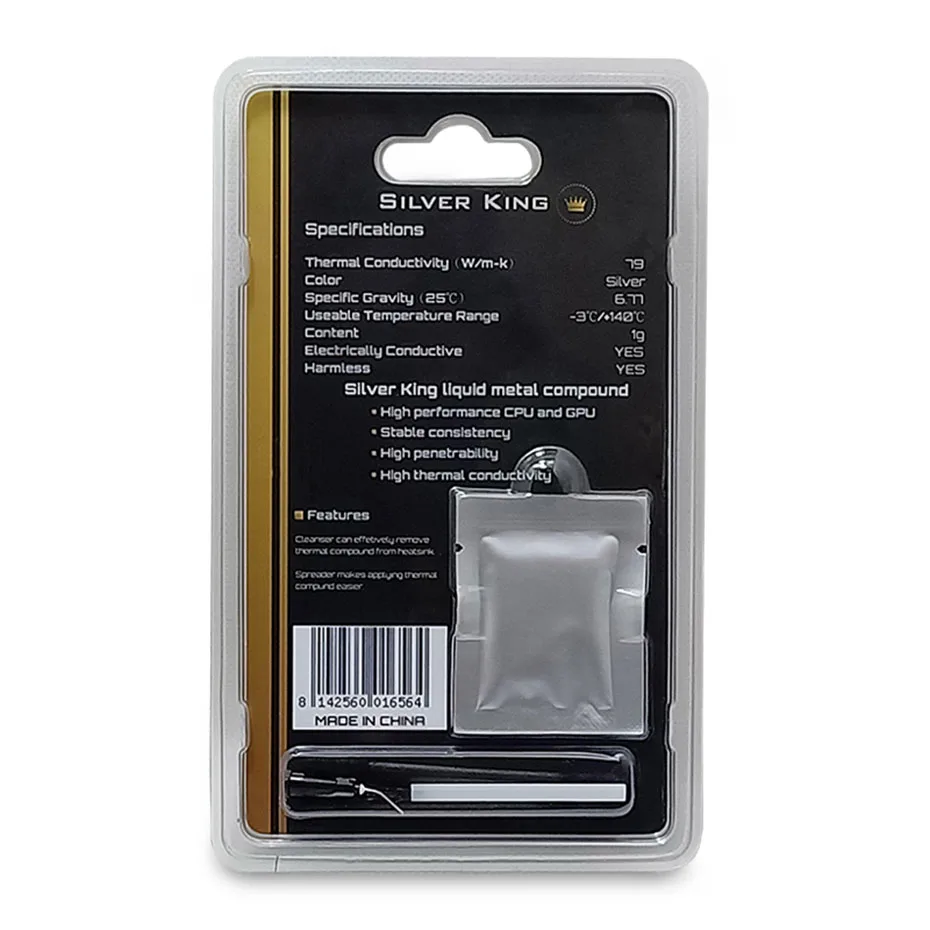 THERMALRIGHT Silver King contains no non-metallic additives (like silicone, oxides, etc.) at all. It also does not contain any solid particles. Due to these properties, THERMALRIGHT Silver King surpasses the best high-performance heat conducting pastes by a multiple. This product for overclockers and gaming players. Do not use with Aluminum.