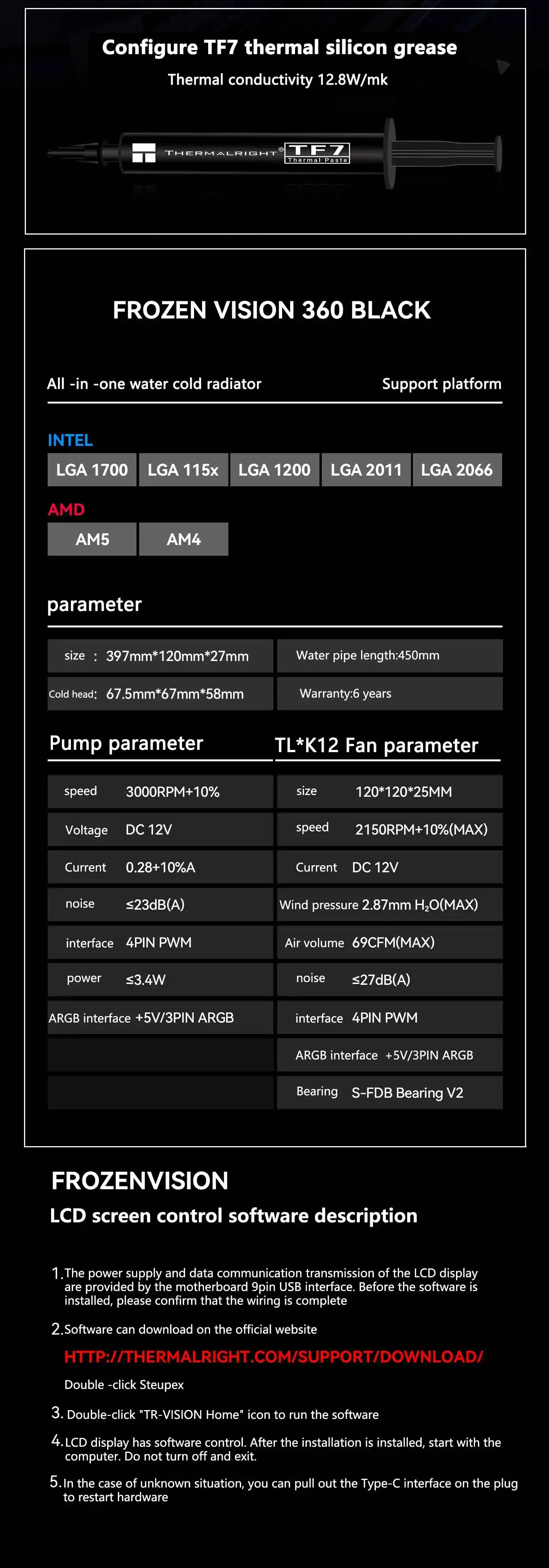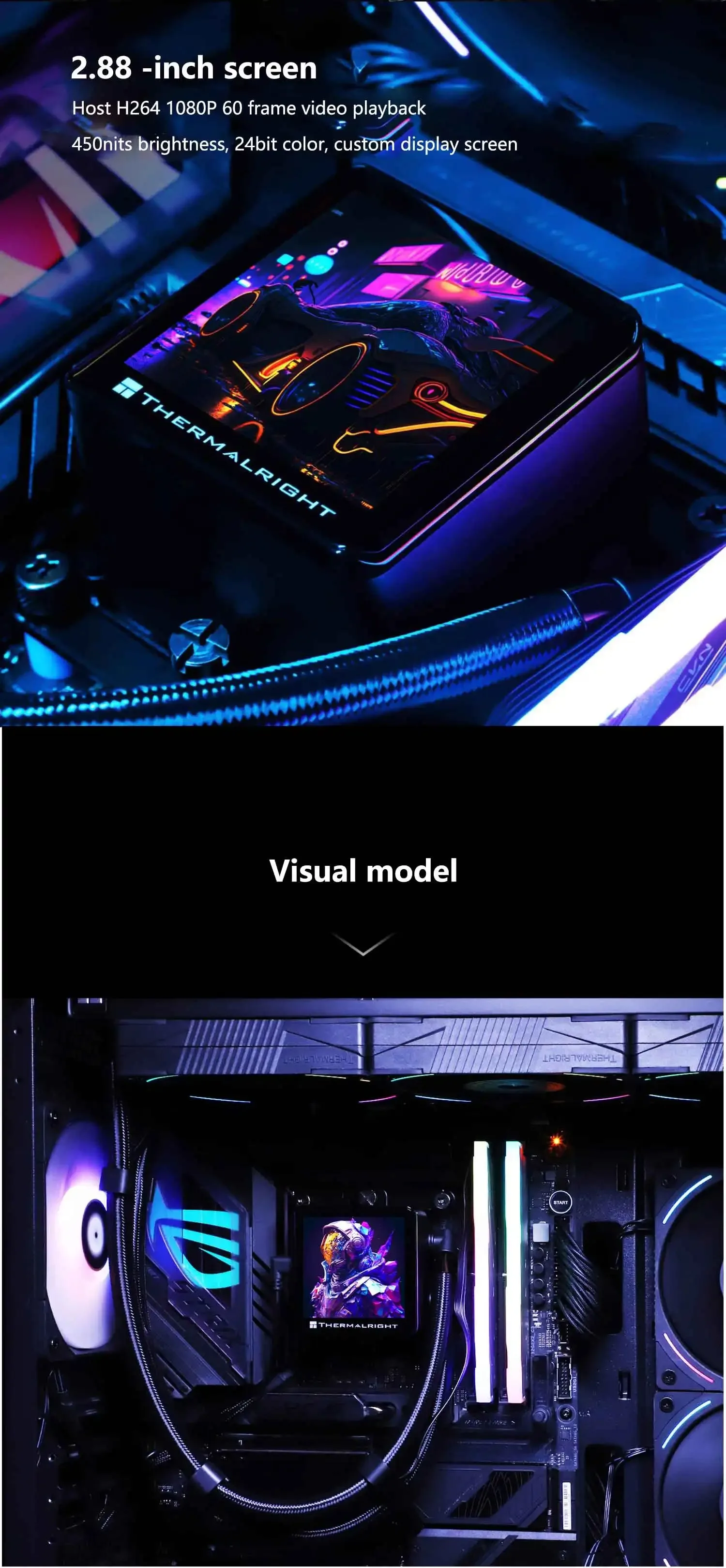 Comprar Thermalright-Radiador de agua fría One -in -one Frozen Vision 360, pantalla LCD 2,88, compatible con imagen personalizada, vídeo y animación