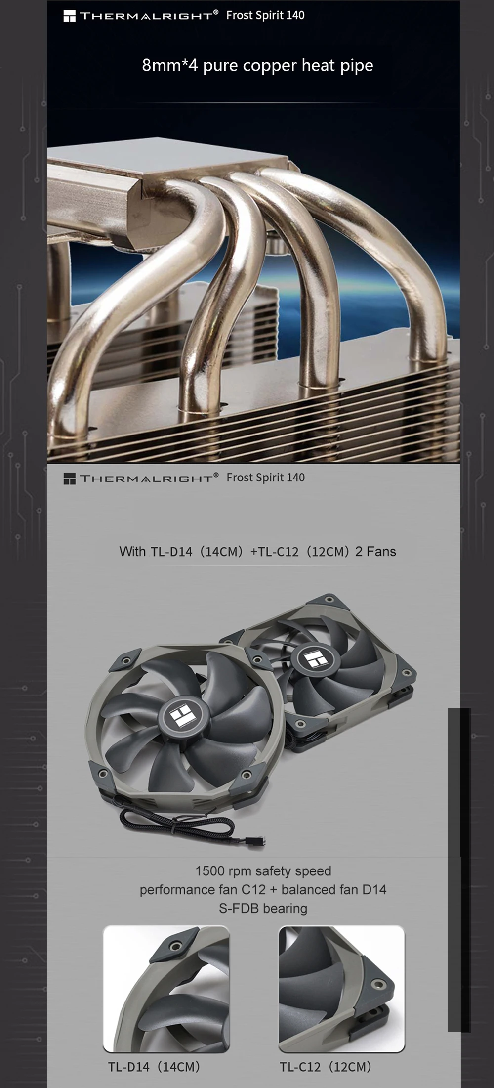 Comprar Thermalright-Radiador de doble torre para CPU, ventilador de refrigeración para Intel 115x/2011/ AMD AM4,RGB4Pin PWM, disipador térmico de 140mm