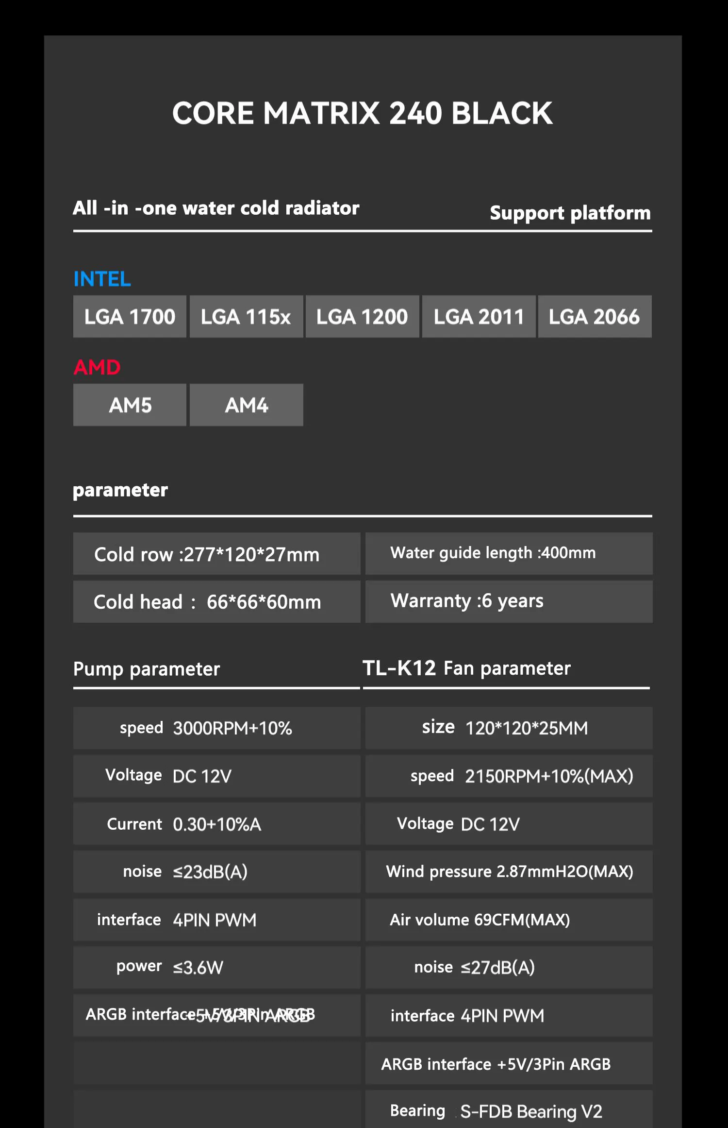 Comprar Thermalright-radiador de refrigeración de agua para CPU, dispositivo con núcleo MATRIX 240, todo en uno, compatible con hebilla de refrigeración de viento/agua, conmutación LGA1700/115X/AM5