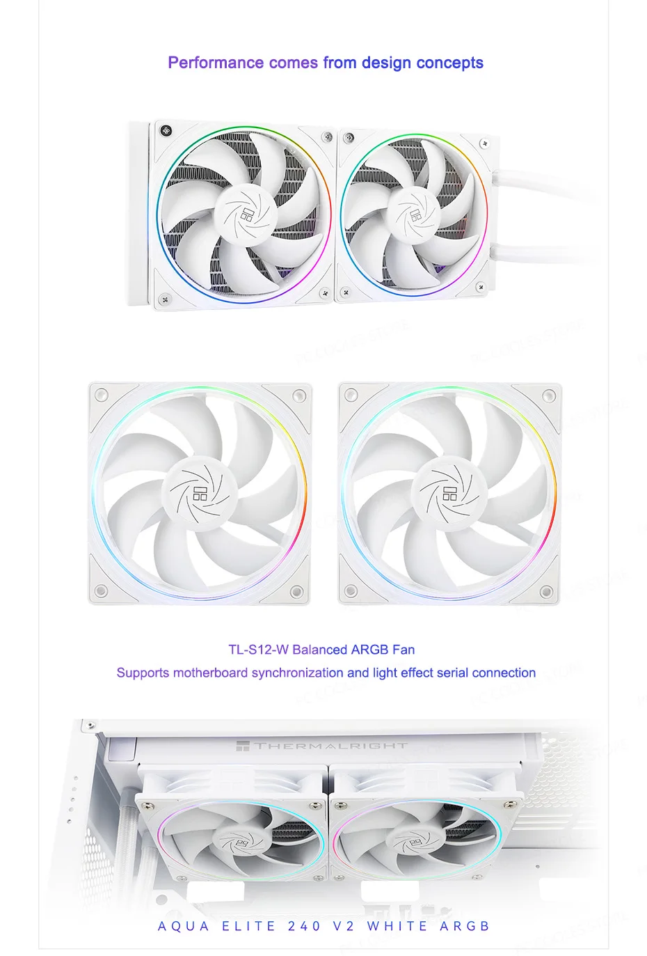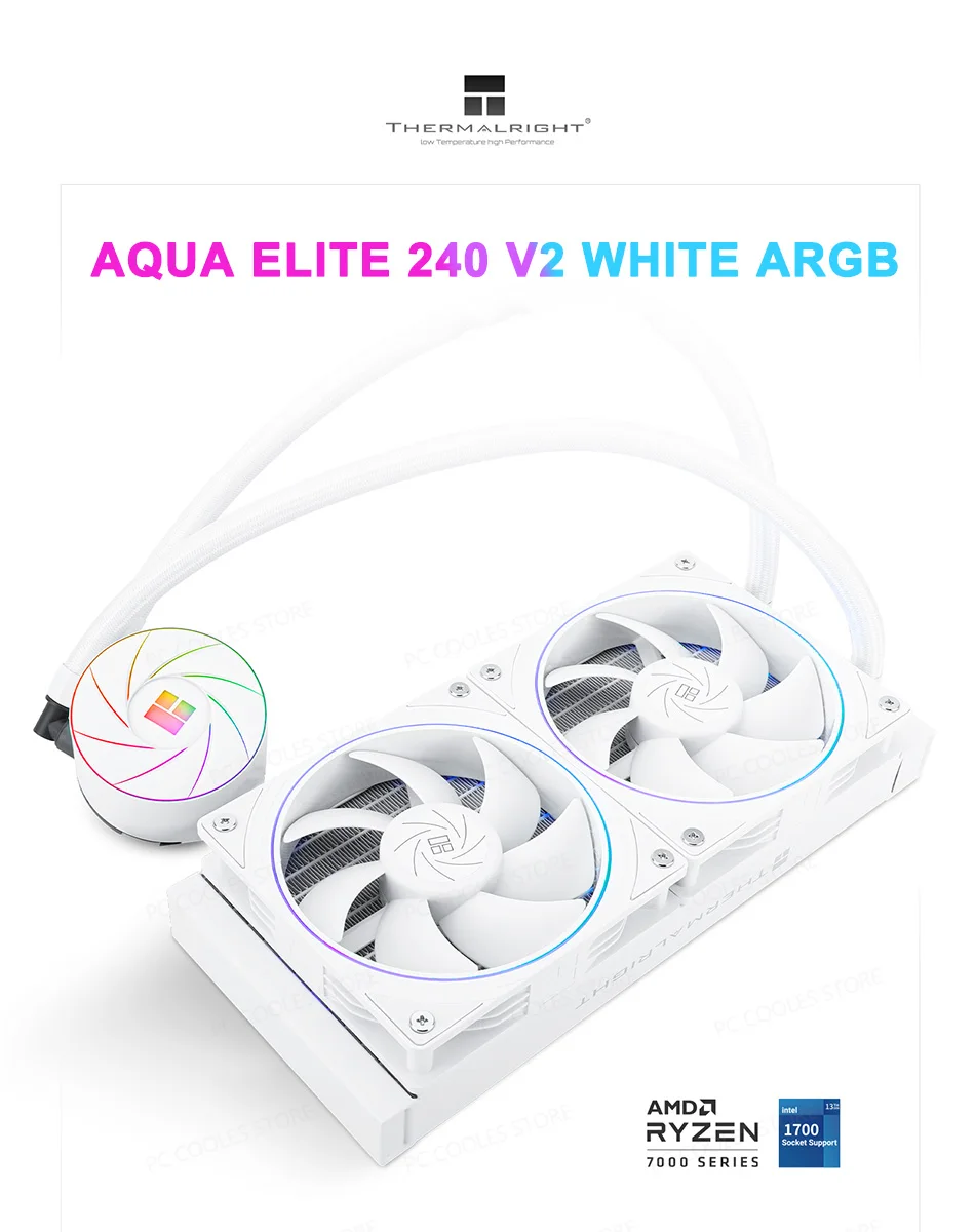 Comprar Thermalright-radiador de refrigeración por agua para CPU, ventilador Halo ARGB de 3 pines, color negro/blanco, 240 V2, 1700, 115x, AM5, 2011