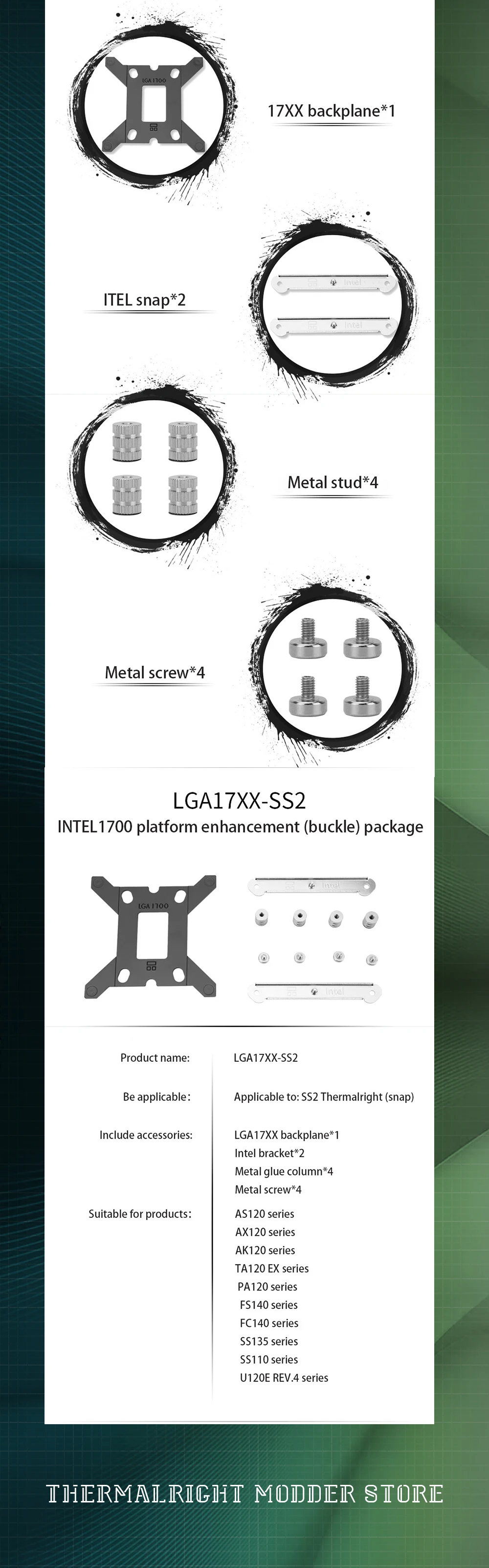 Thermalright-Soporte de hebilla para enfriador de CPU, soporte para Intel 1700, kit de refrigeración por agua, placa trasera de montaje refrigerada por aire, funda de PC