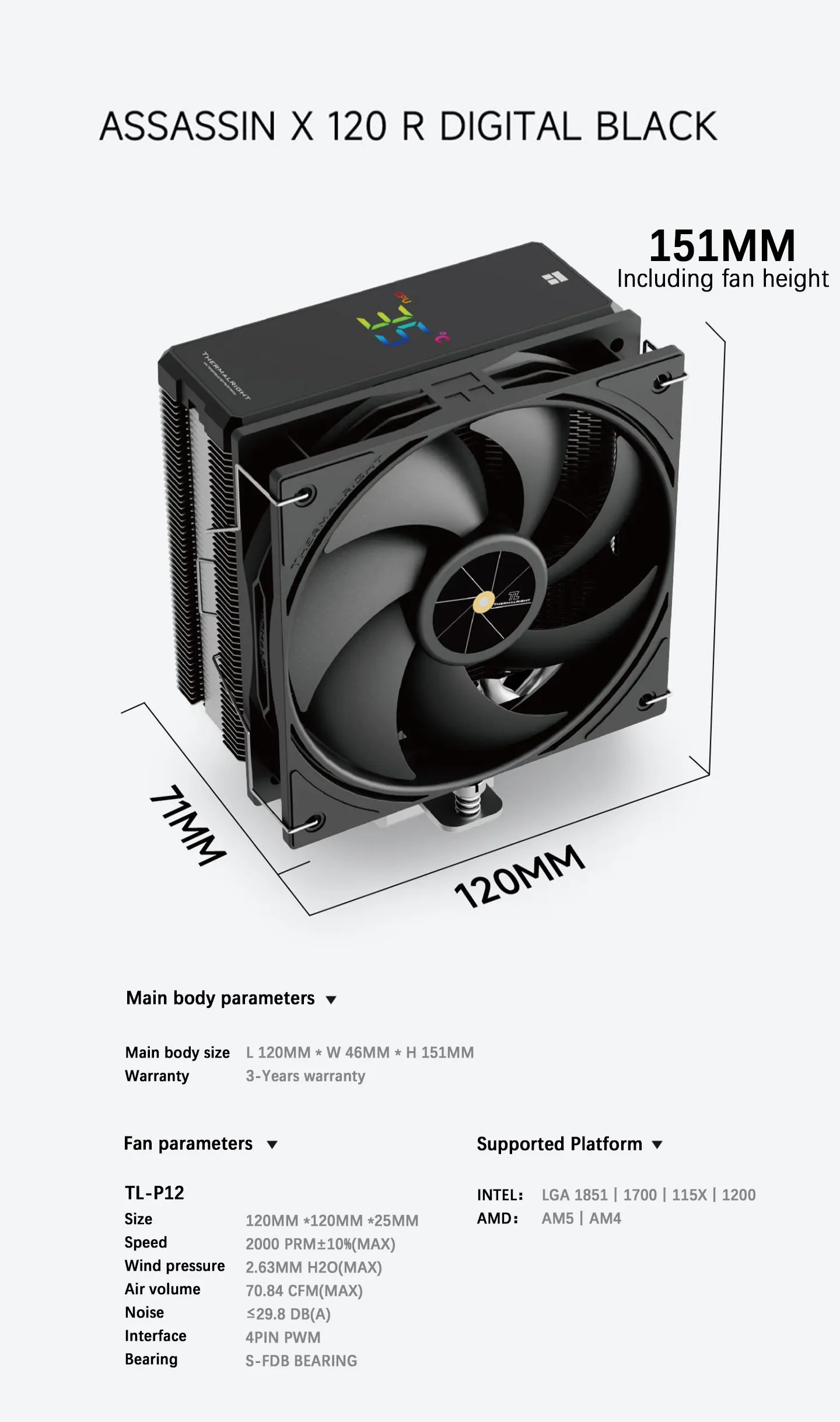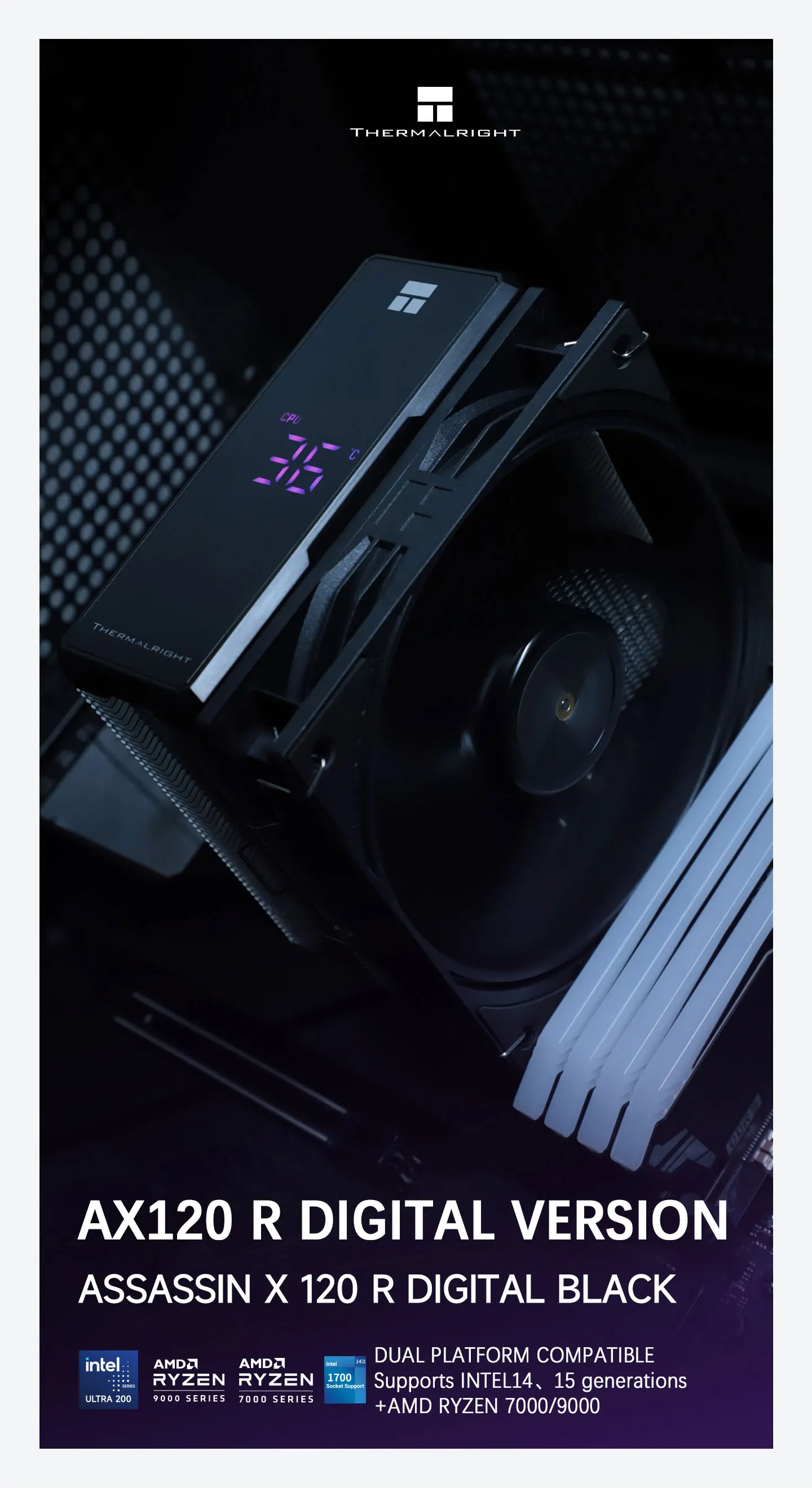 Comprar Thermalright TL-AX120 R DIGITAL 4x6mm AGHP4.0 tubo de calor niquelado 151mm CPU enfriador de aire para LGA1851/1700/115X/1200 AMD AM5
