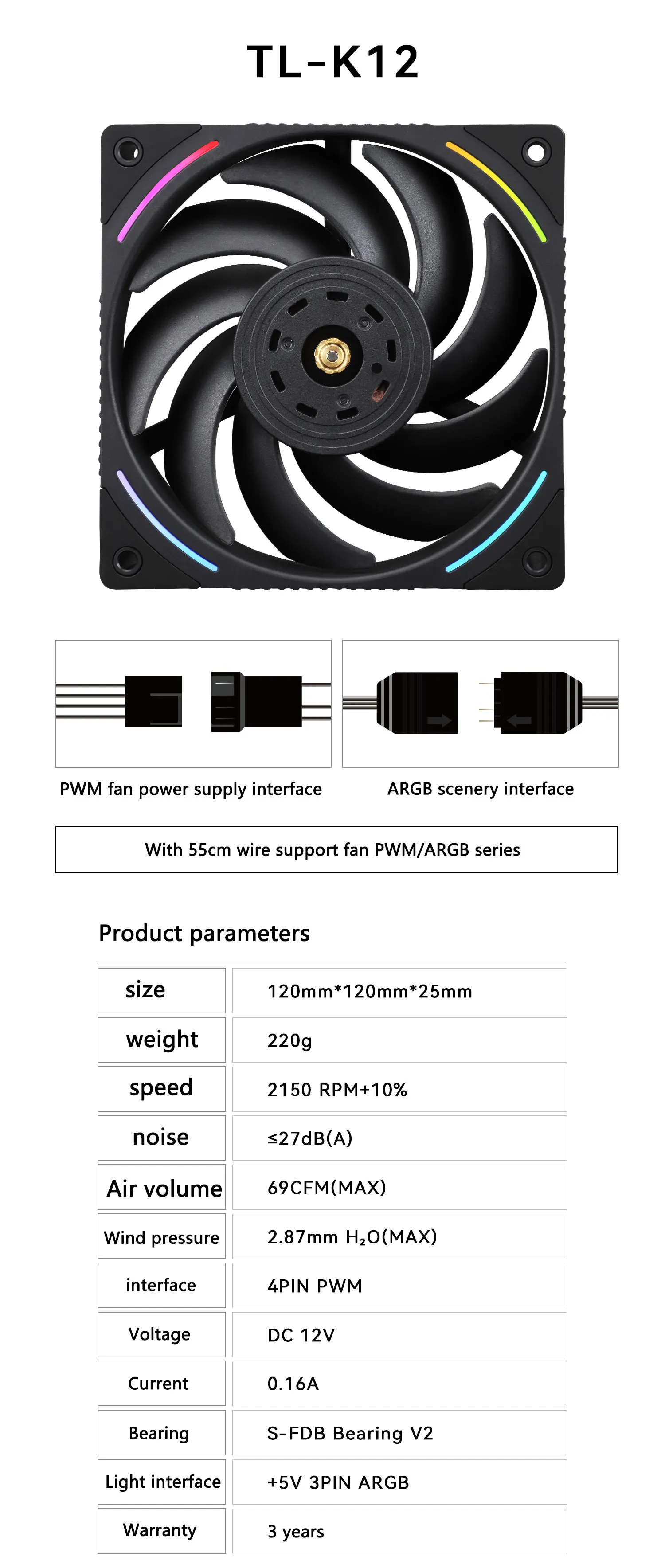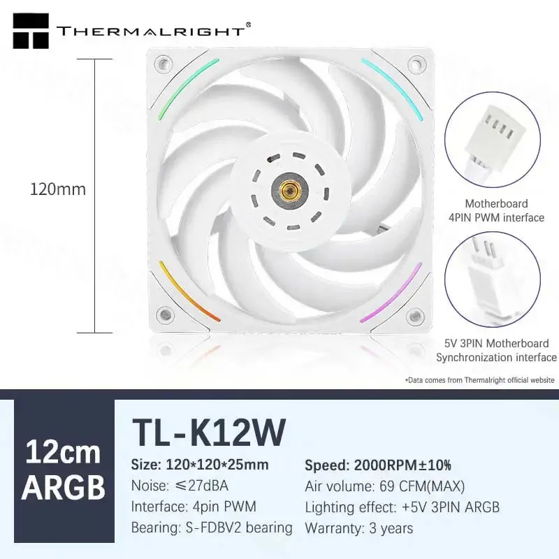 Comprar Thermalright-TL-K12 con 4 ángulos de apertura, ventilador de refrigeración con caja PWM de 4 pines, 12cm, sincronización, se puede conectar en serie