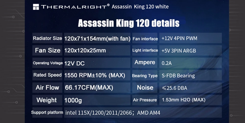 Comprar Thermalright-Torre enfriadora de CPU de escritorio, ventilador PWM de 120mm, radiador para Intel 115x 20XX 1700 AMD AM4,5V 3Pin AK120 negro/blanco