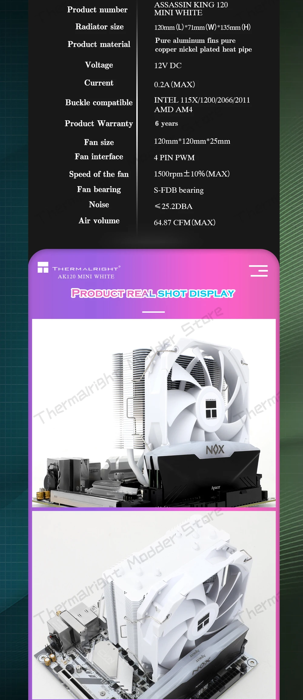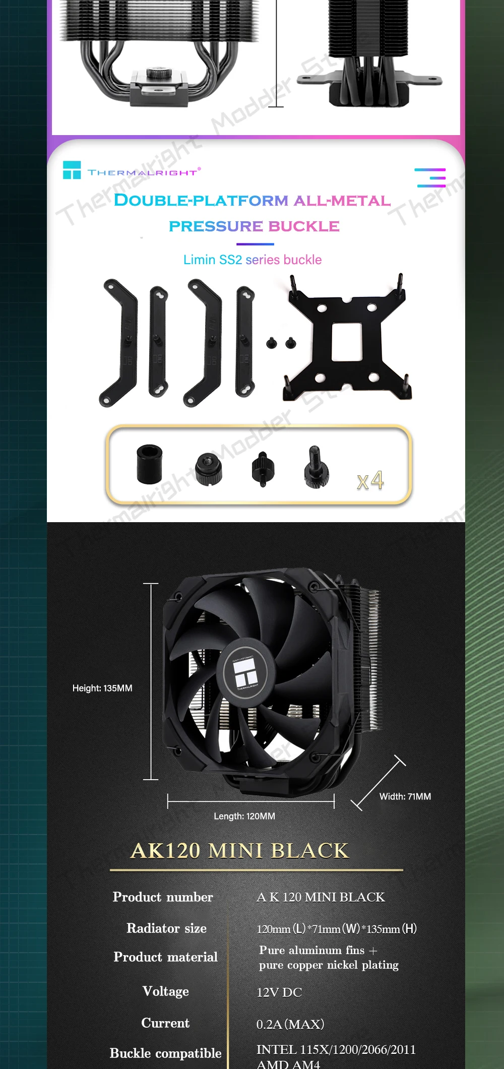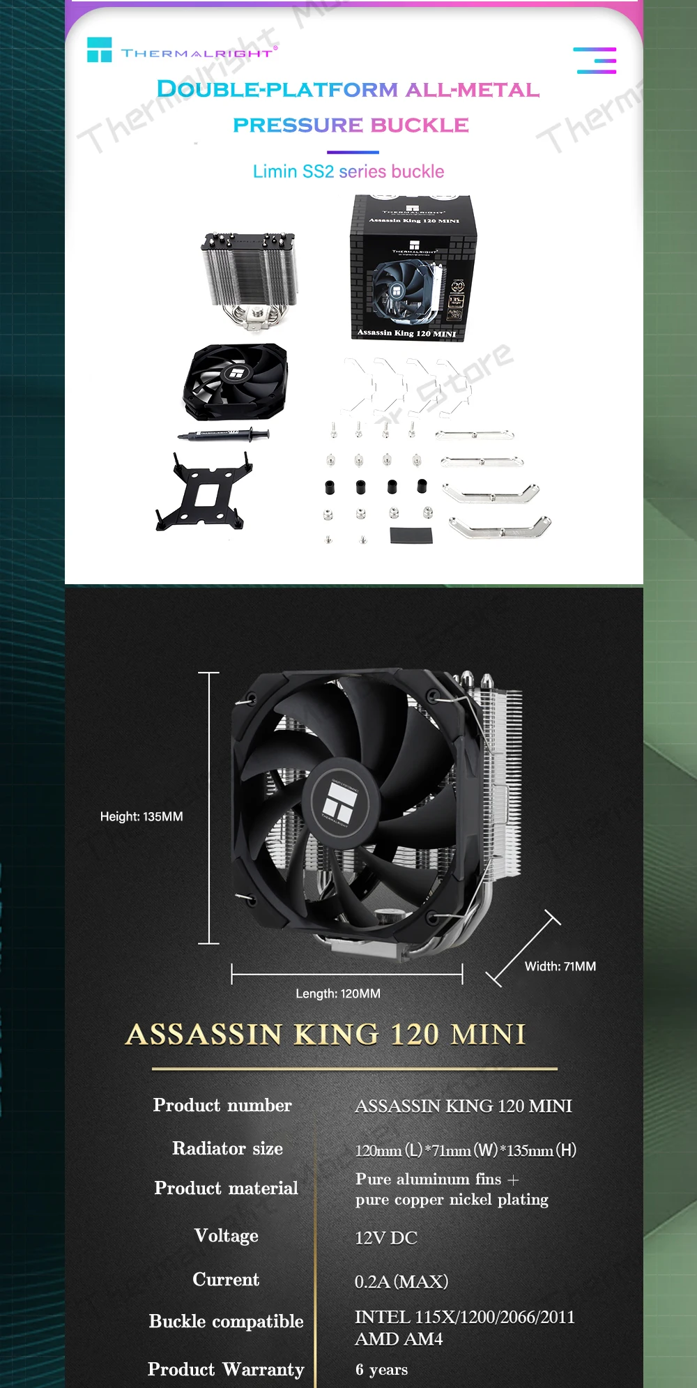 Comprar Thermalright Towers CPU Cooler 120MM PWM ventiladores de refrigeración 1500RPM AGHP2 5 tubo de calor para Inte AMD AM4 12V DC