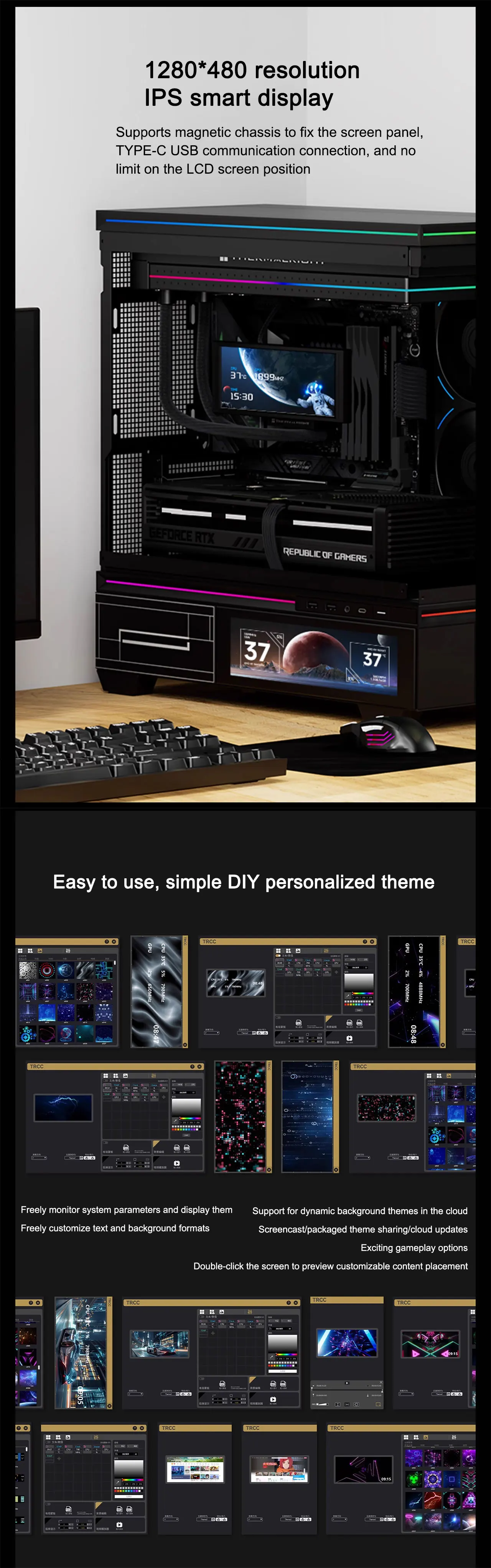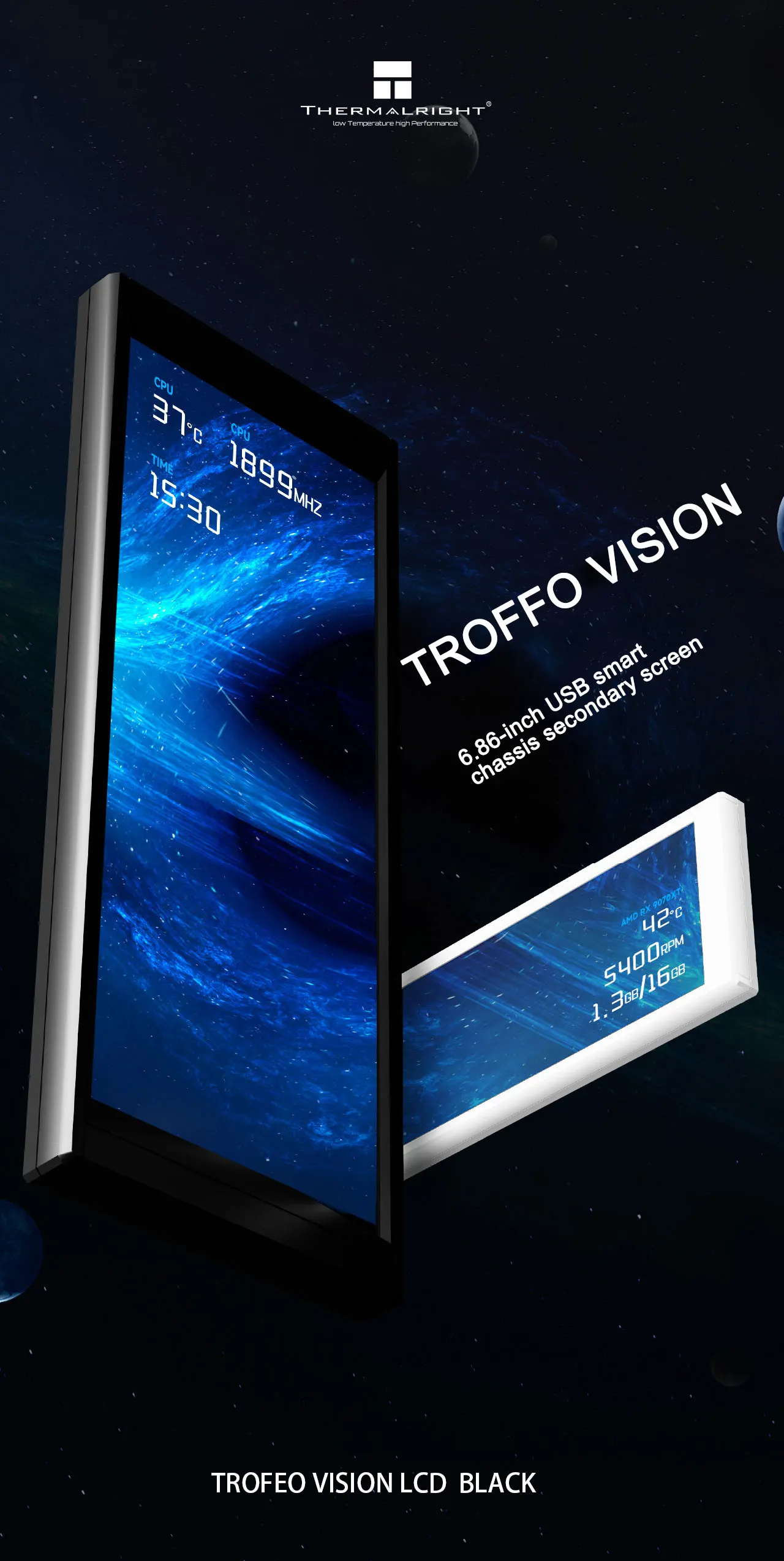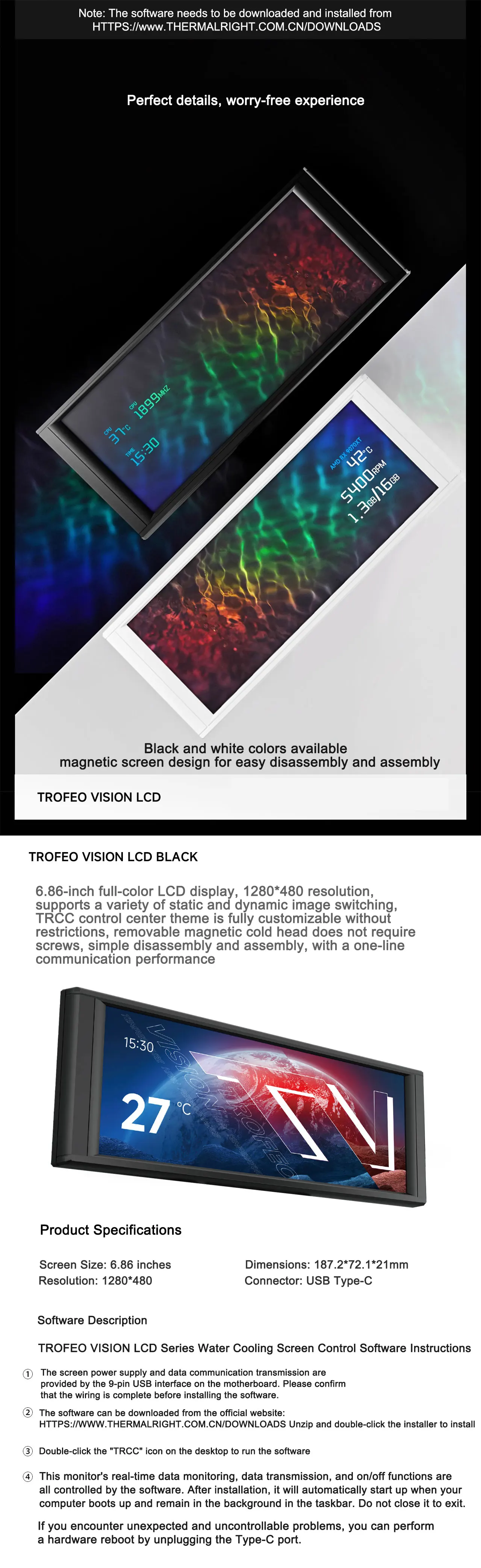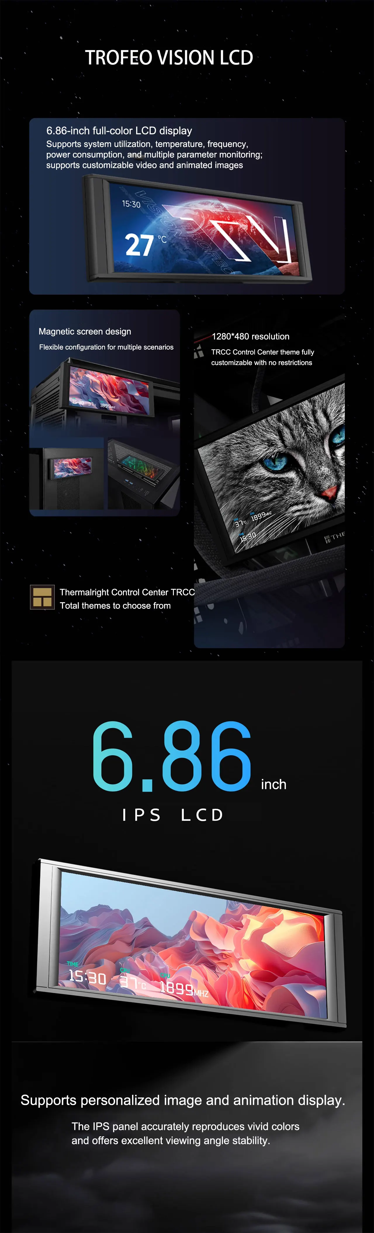 Thermalright TROFEO VISION LCD pantalla a todo color de 6,86 pulgadas funda inteligente USB pantalla secundaria resolución 1280*480 diseño magnético